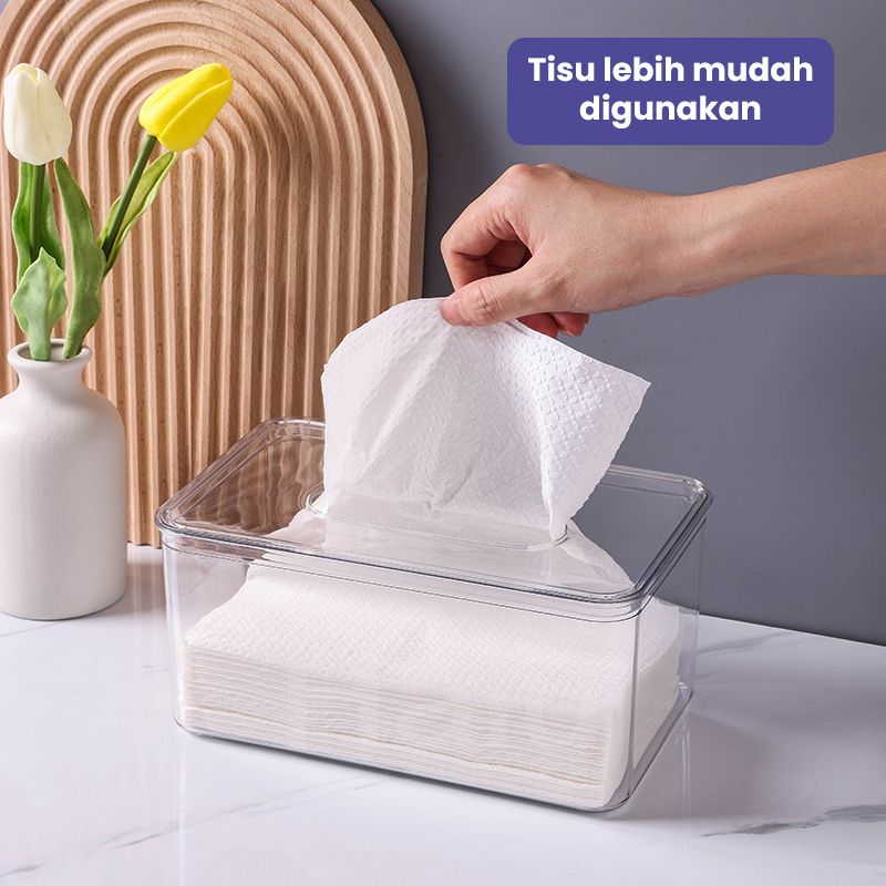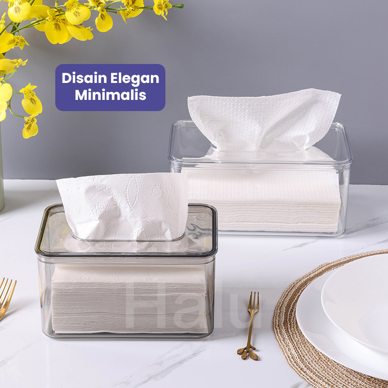 HALU Kotak Tempat Tisu Transparan Minimalis Wadah Tisu Kotak Penyimpanan Transparan Modern Tissue Box Kotak Tisu Organiser HSB712