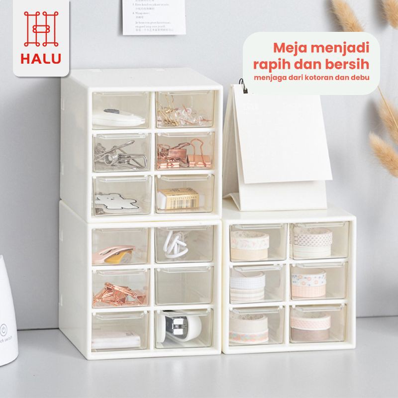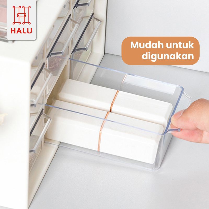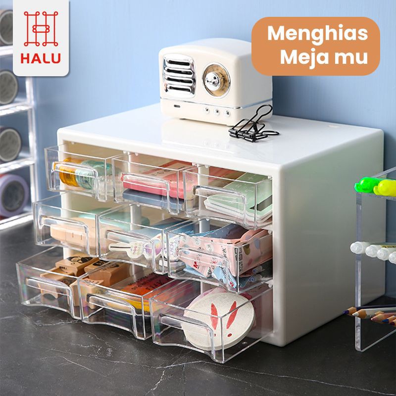 Halu Kotak Laci Mini Kotak Perhiasan 9 Sekat Kotak Serbaguna Accessories Box Kotak Aksesoris Laci serbaguna HRM319