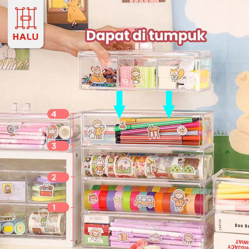 Halu Rak Kosmetik Acrylic Kotak Kapas Make Up Tempat Penyimpanan Lipstik Brush Tempat kosmetik Rak kosmetik Tempat Kosmetik Akrilik HRM317
