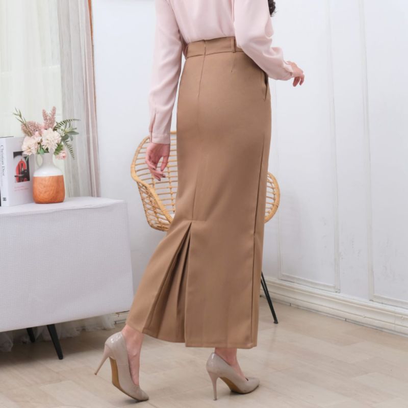 NEELAM - Rok Kerja Wanita Bahan Kantor Formal Rempel Bawah/Biron