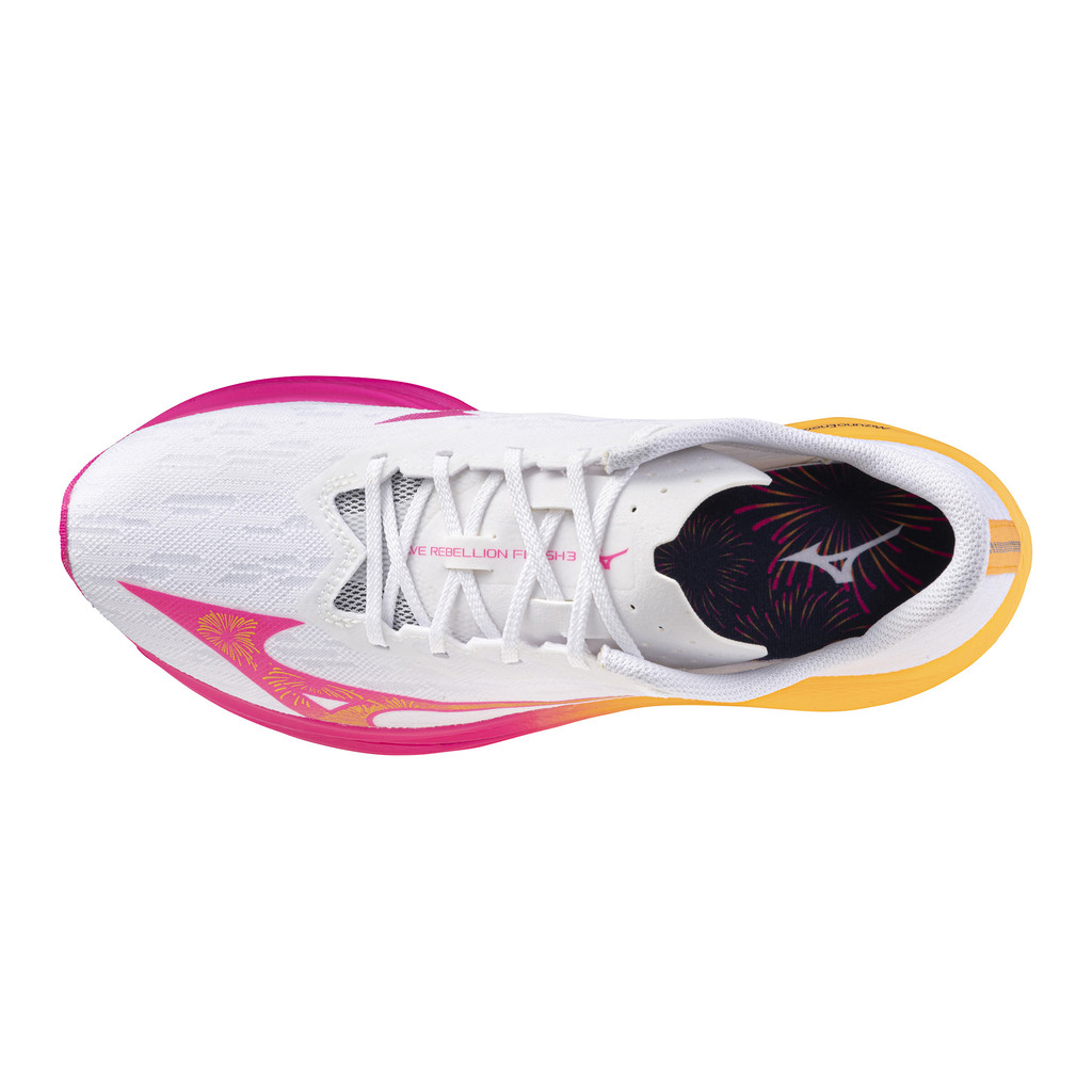 MIZUNO WAVE REBELLION FLASH 3-WHITE/PINK TETRA/TANG ORANGE