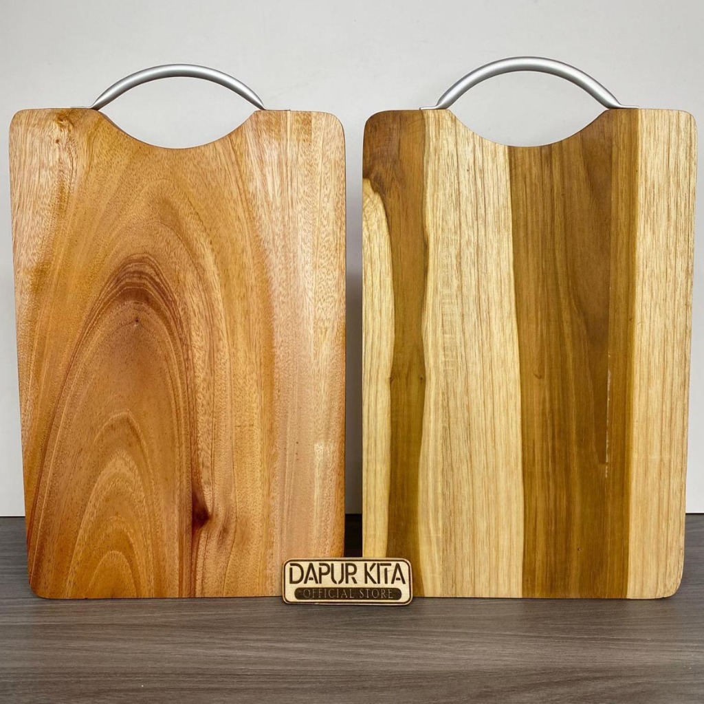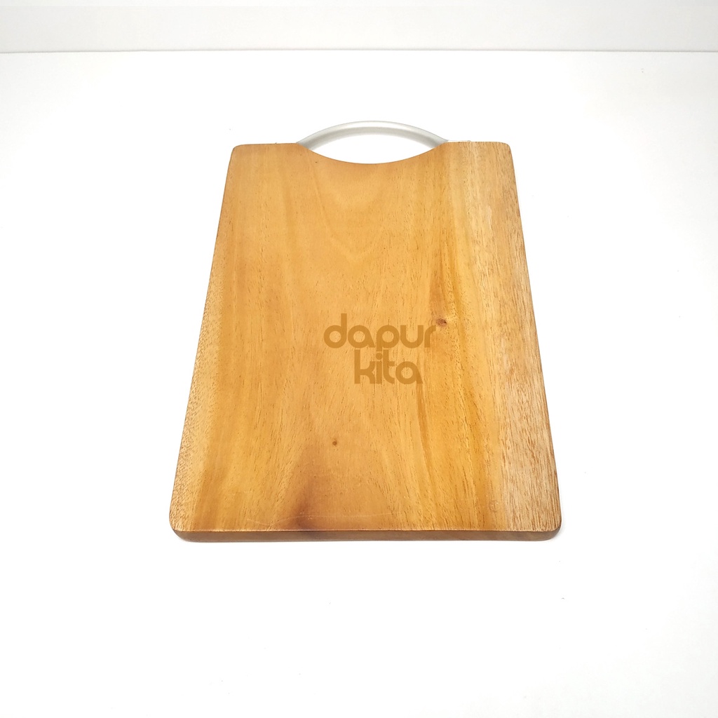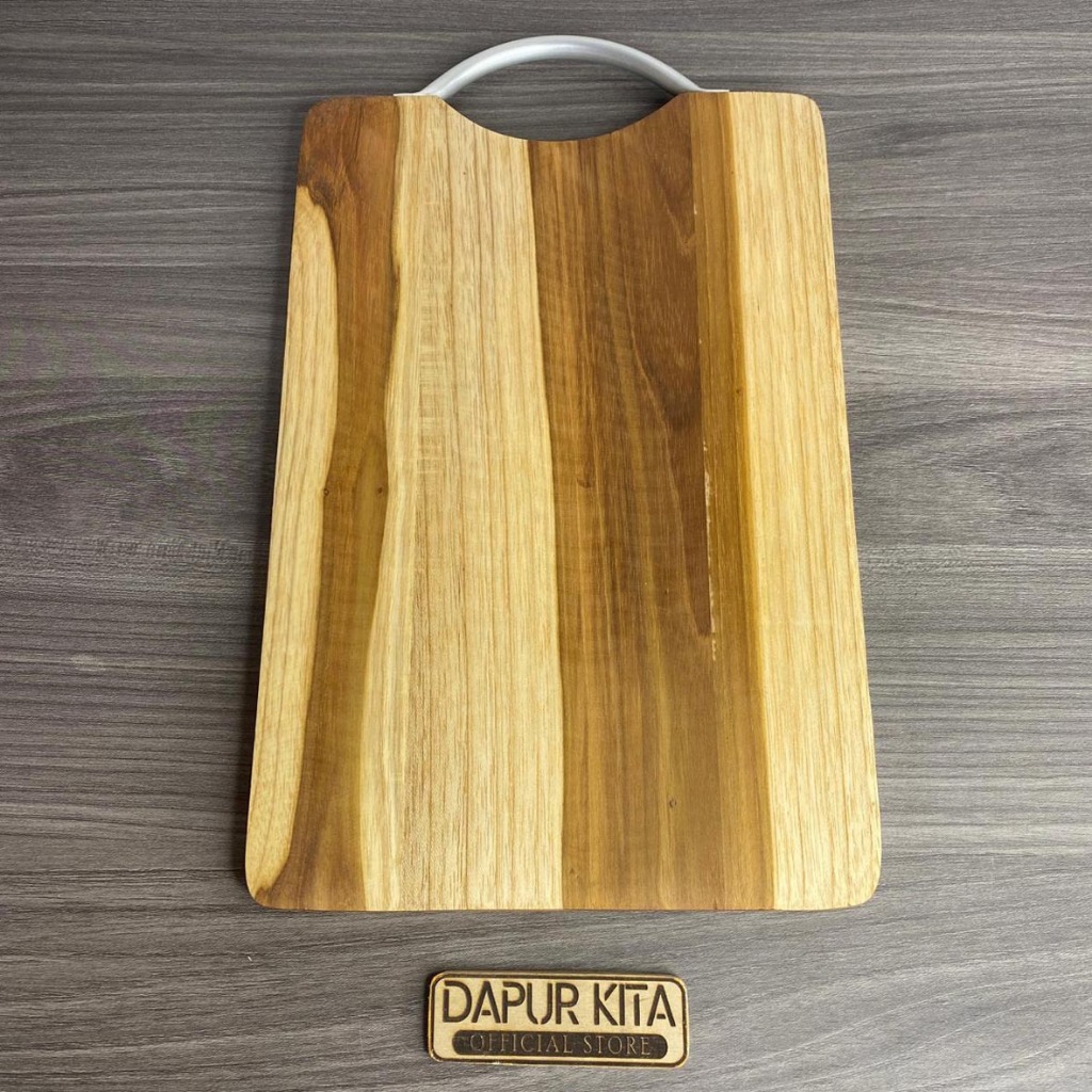 Talenan Kayu Jati Premium Model Pegangan Alumunium Ukuran 20 x 30 Cm
