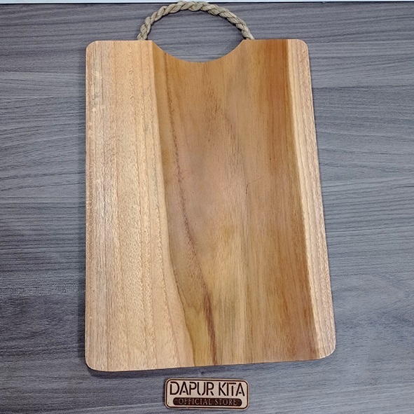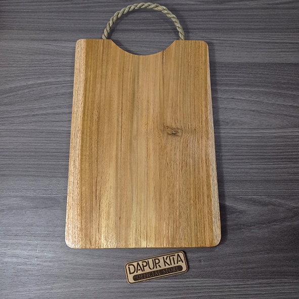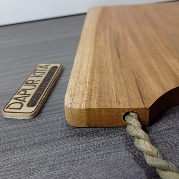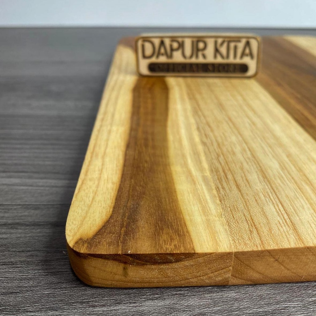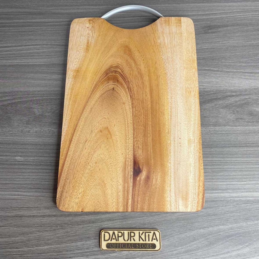 Talenan Kayu Jati Premium Model Pegangan Alumunium Ukuran 20 x 30 Cm