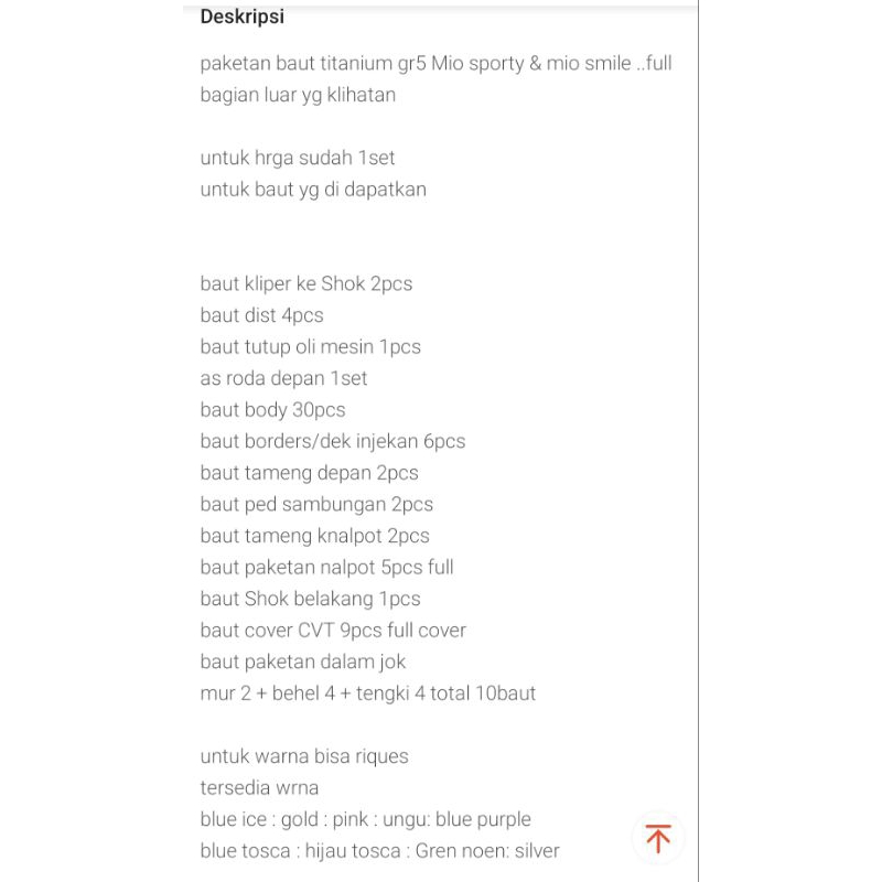 paketan baut titanium gr5 Mio sporty & Mio smile full bagian luar yg klihatan