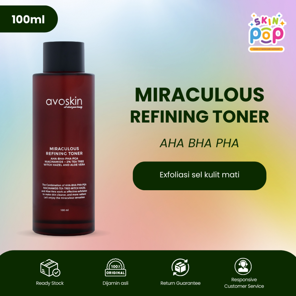 Avoskin Miraculous Refining Toner 100ml AHA BHA l Toner Eksfoliasi Mencerahkan & Melembapkan Kulit