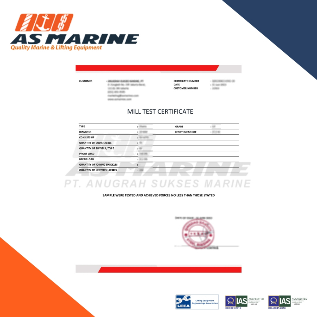 Joining Shackle / Segel Rantai Jangkar Kapal 22 mm Grade U2 Mill