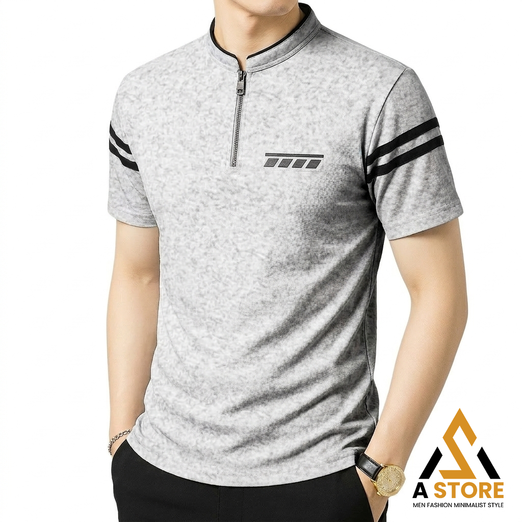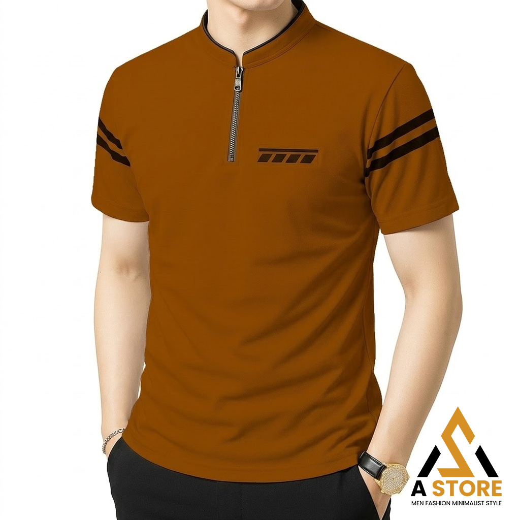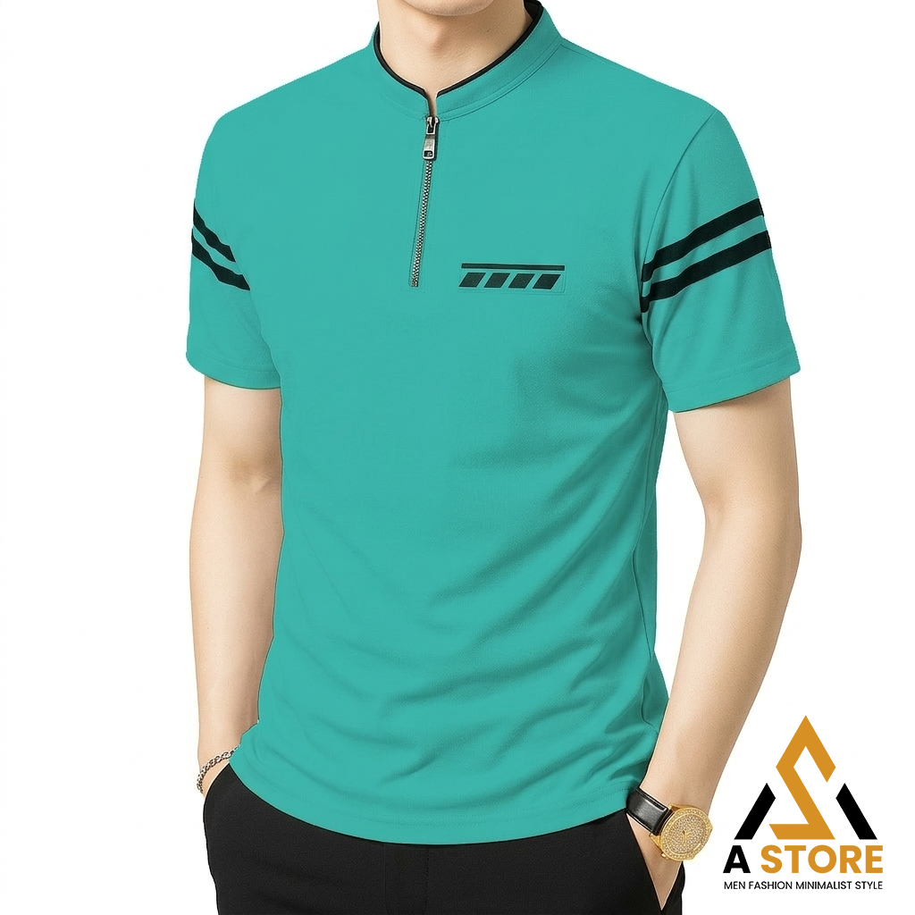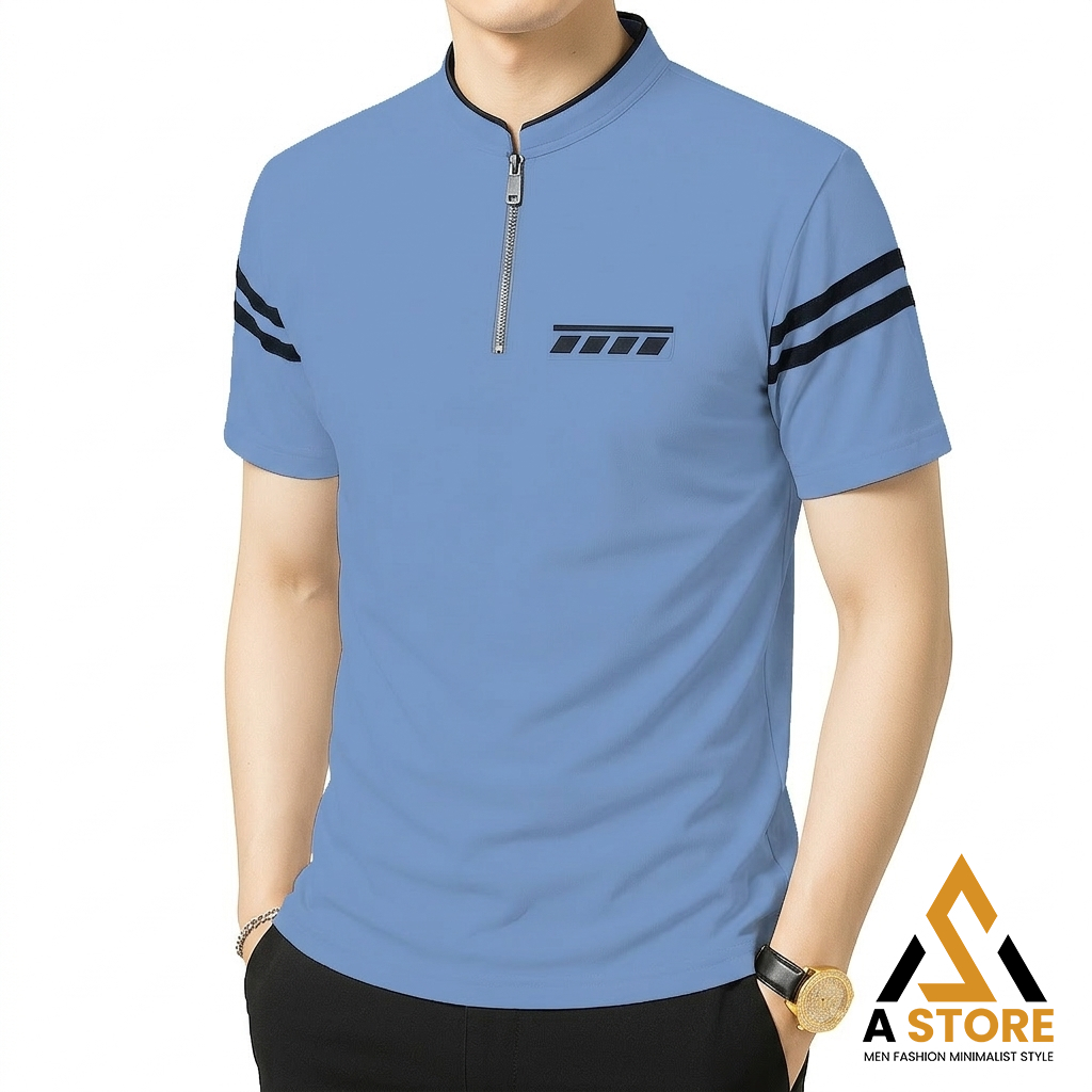 [ Terlaris ] Kaos Pria Kerah Shanghai Resleting Saku Polet Lengan Garis - Polo Shirt Pria Gaya Korea - Kaos Polo Shanghai Zipper Katun Premium Original