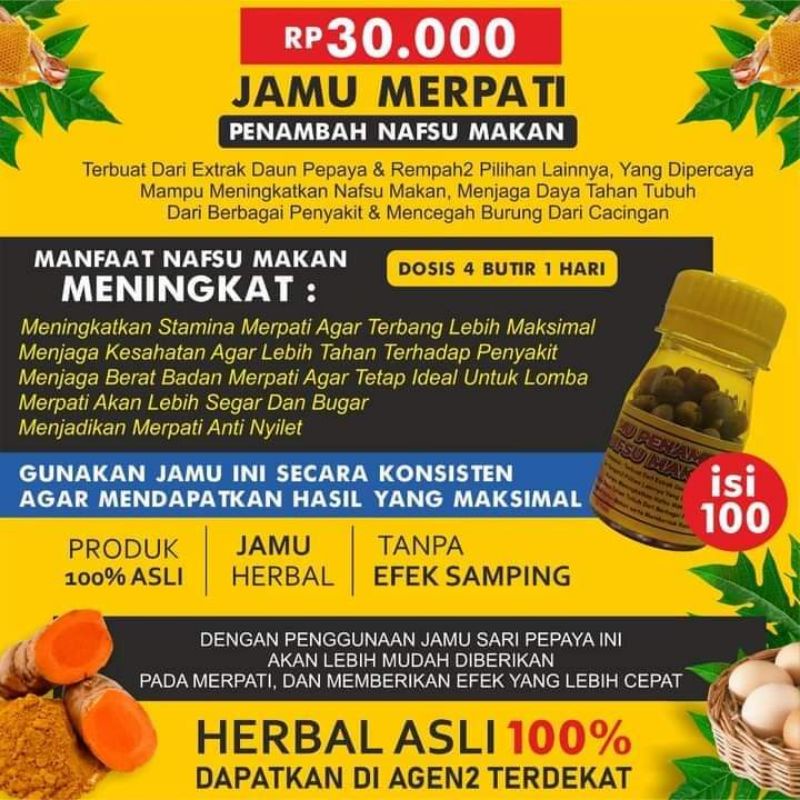 PENAMBAH NAFSU MAKAN MERPATI 100% HERBAL ISI 100 BUTIRAN