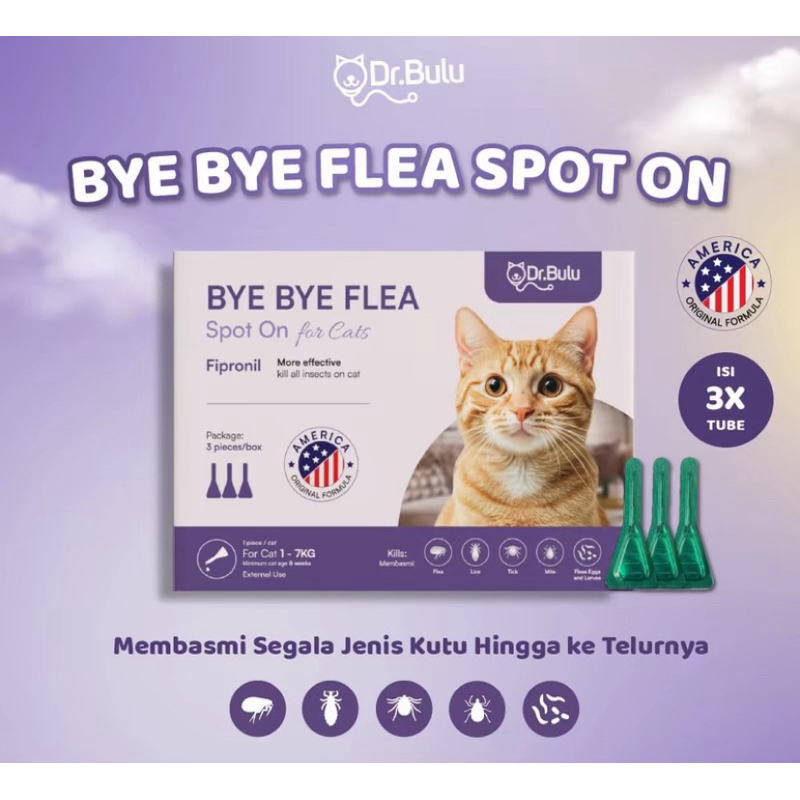 Dr. Bulu Bye Bye Flea Obat Kutu Kucing 1 Pack Isi 3 Tube