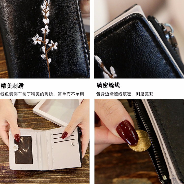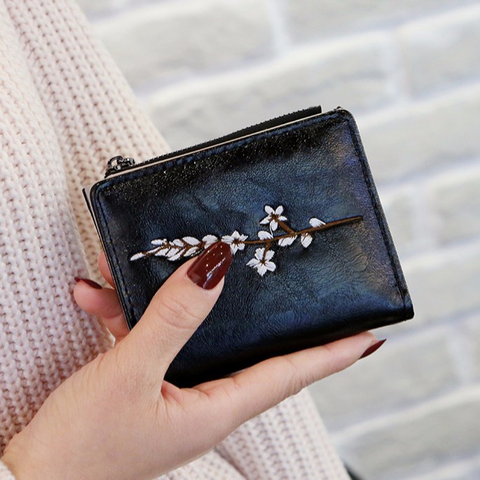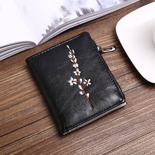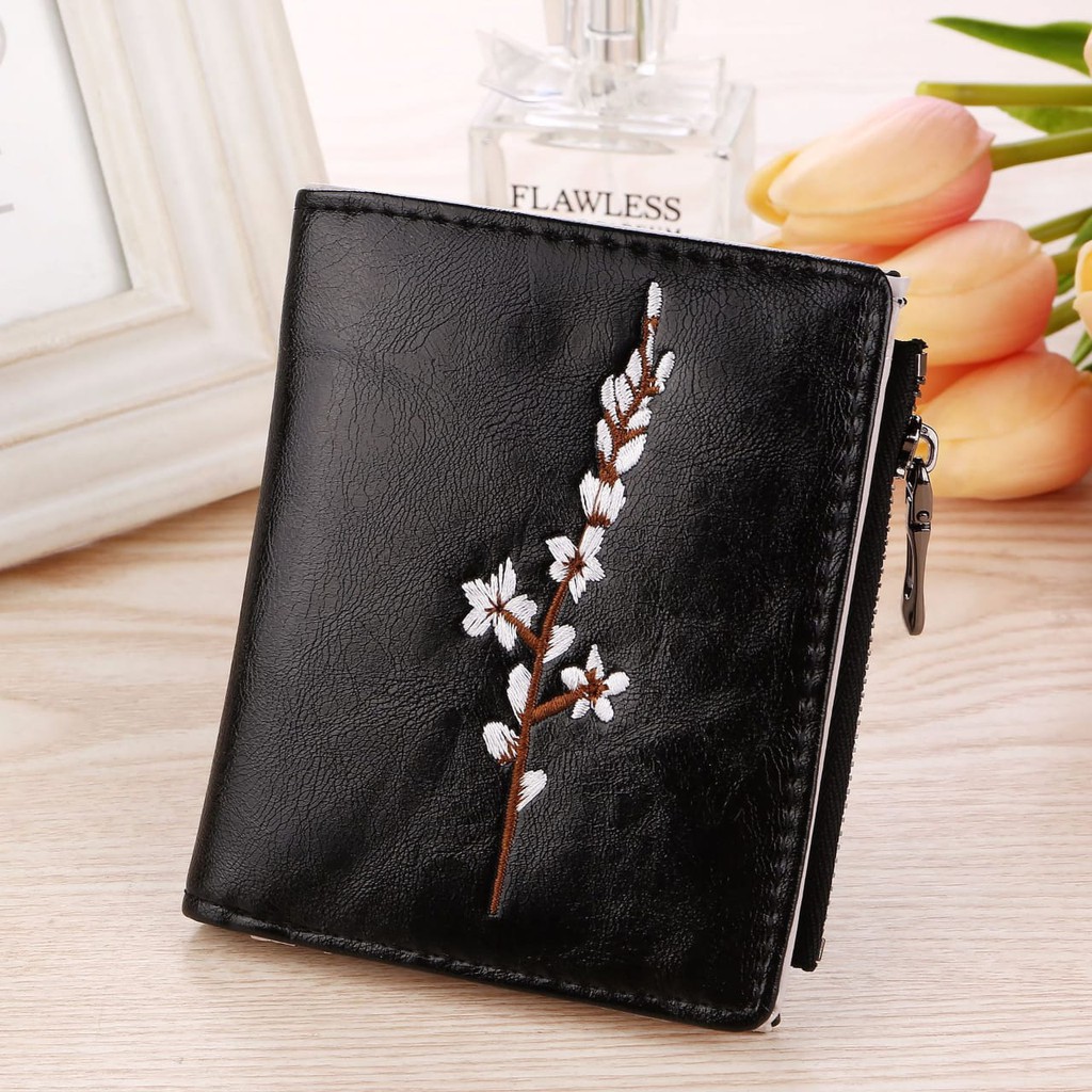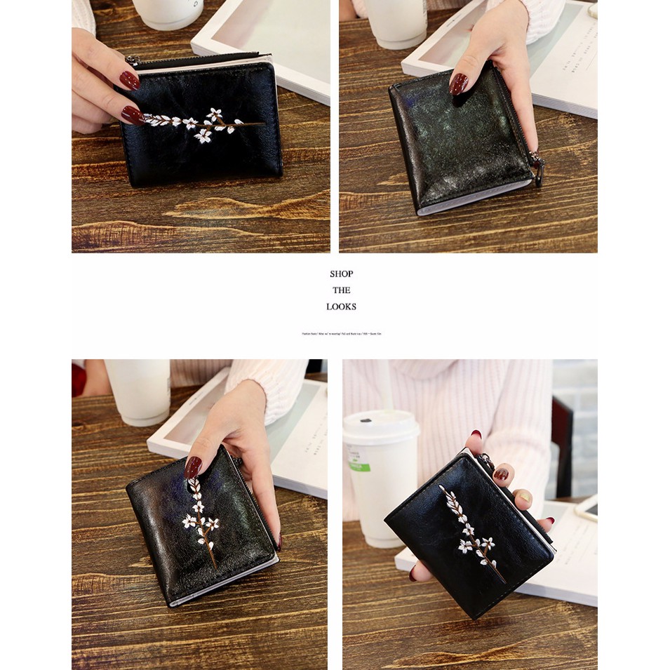 DOMPET WANITA KULIT HITAM LIPAT MIA WA035B5 ABG PREMIUM MURAH KOREA BUNGA BORDIA FASHION ORI