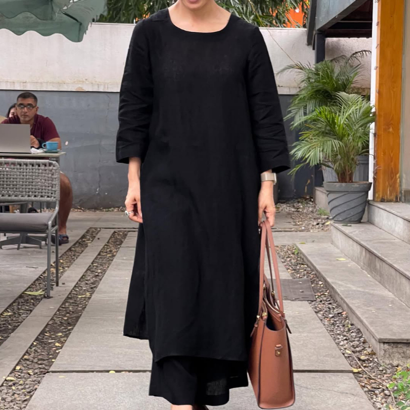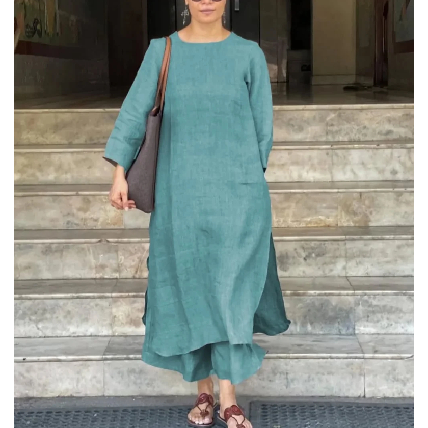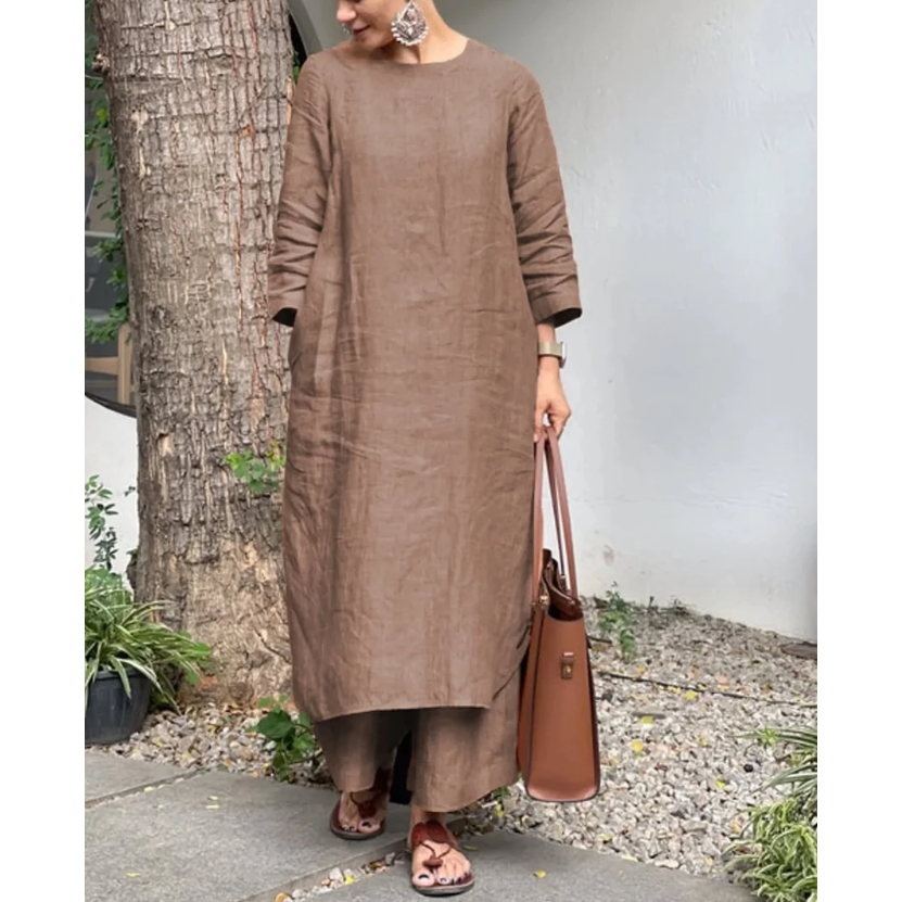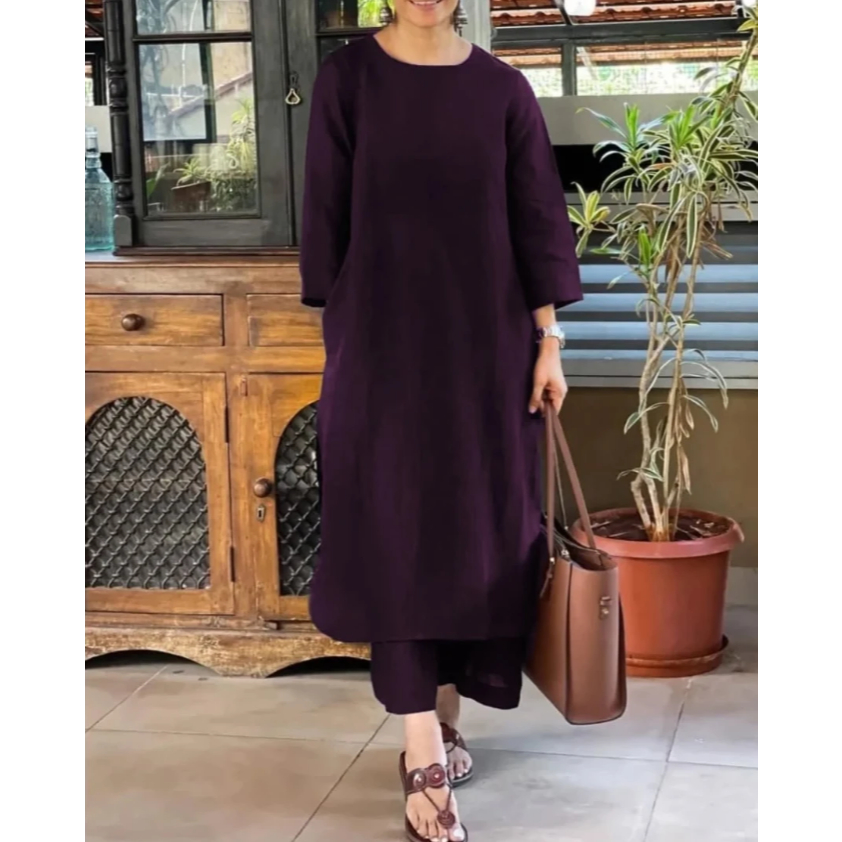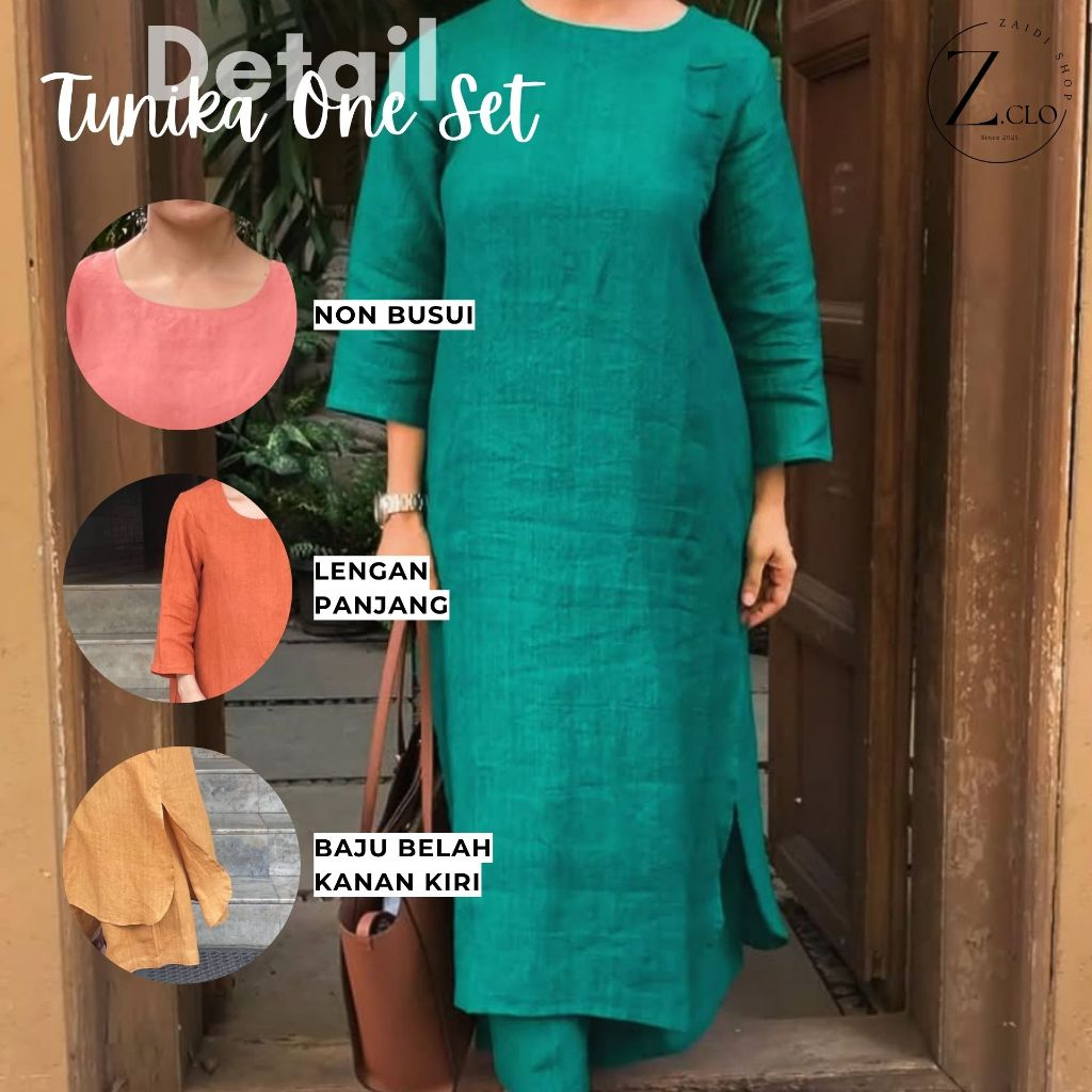 Tika One Set Wanita Kekinian Katun Linen Rami Polos Setelan Basic Tunik Kulot Outfit Remaja Dewasa