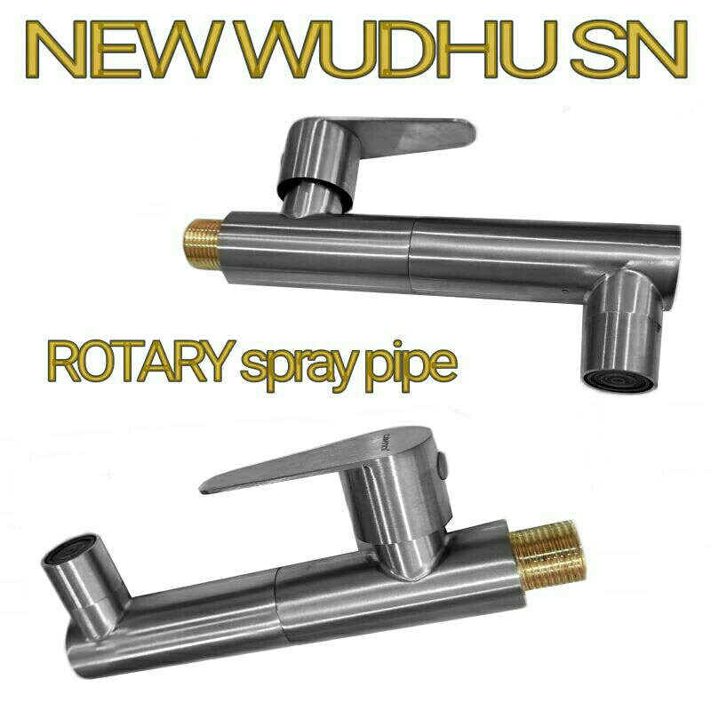 Kran wudhu tembok keran wudhu wudu wuduh pipa dapat di putar rotary system silver and grey color stenlis dan zinc babet krum wastafel