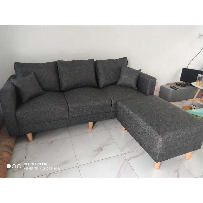 Sofa L Minimalis, kaki kayu, sofa L, Sofa Minimalis
