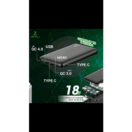 ZHFU ZOLTA POWERBANK 10000 MAH QUICK CHARGE 4.0 POWER DELIVERY SPC VOOC POWERBANK