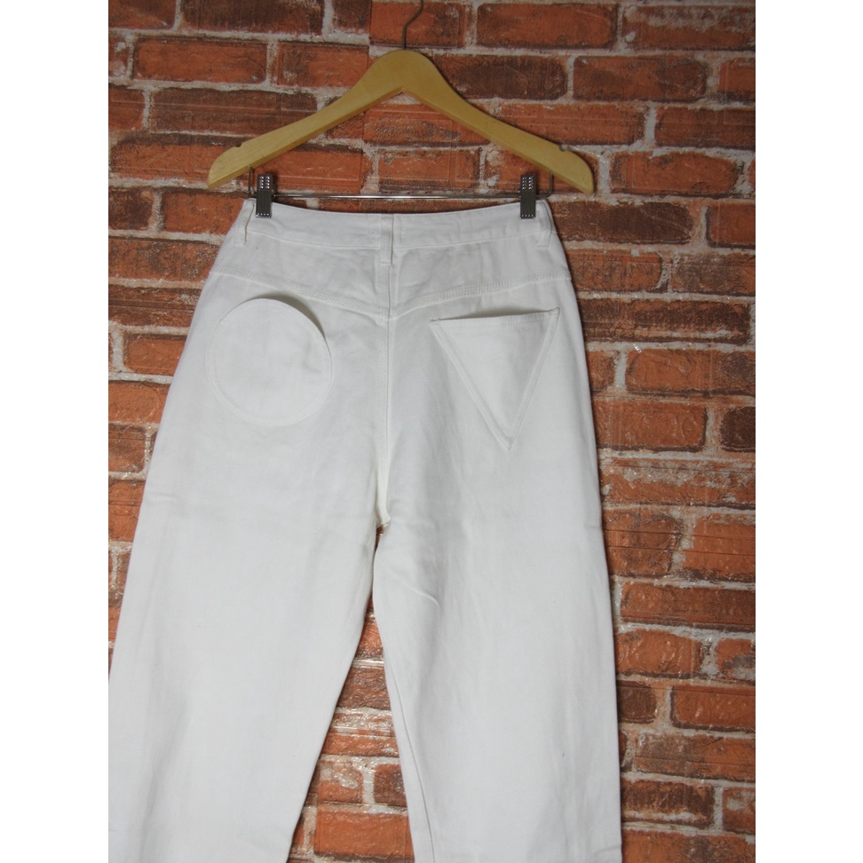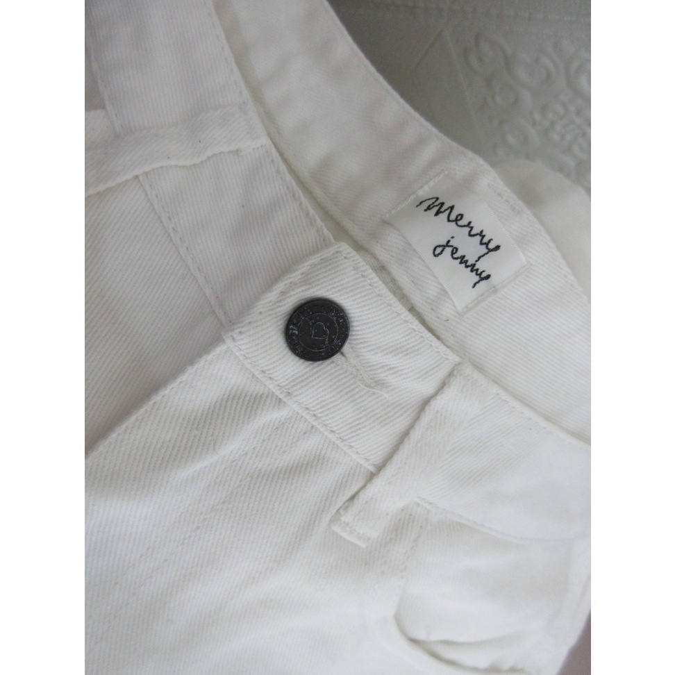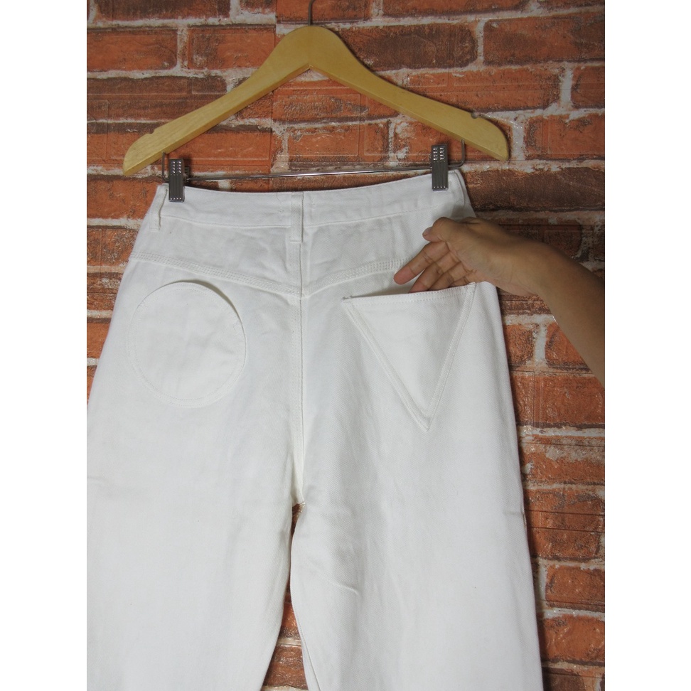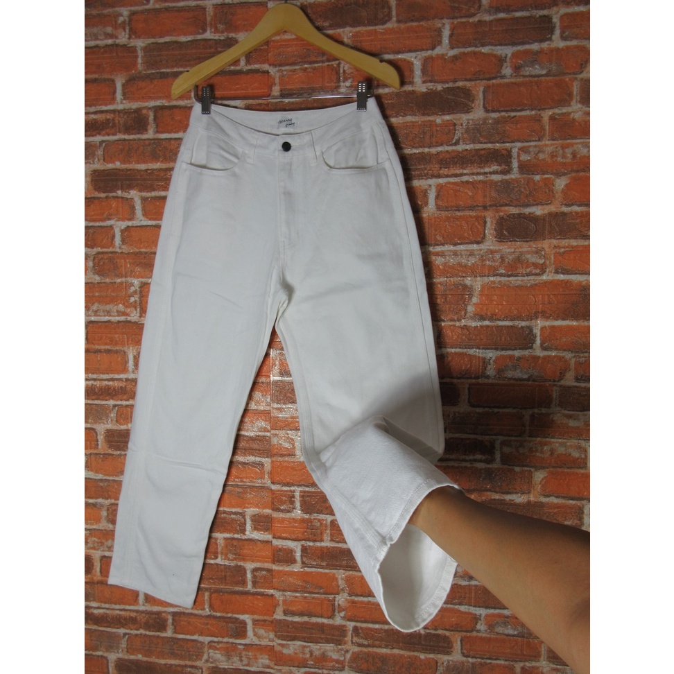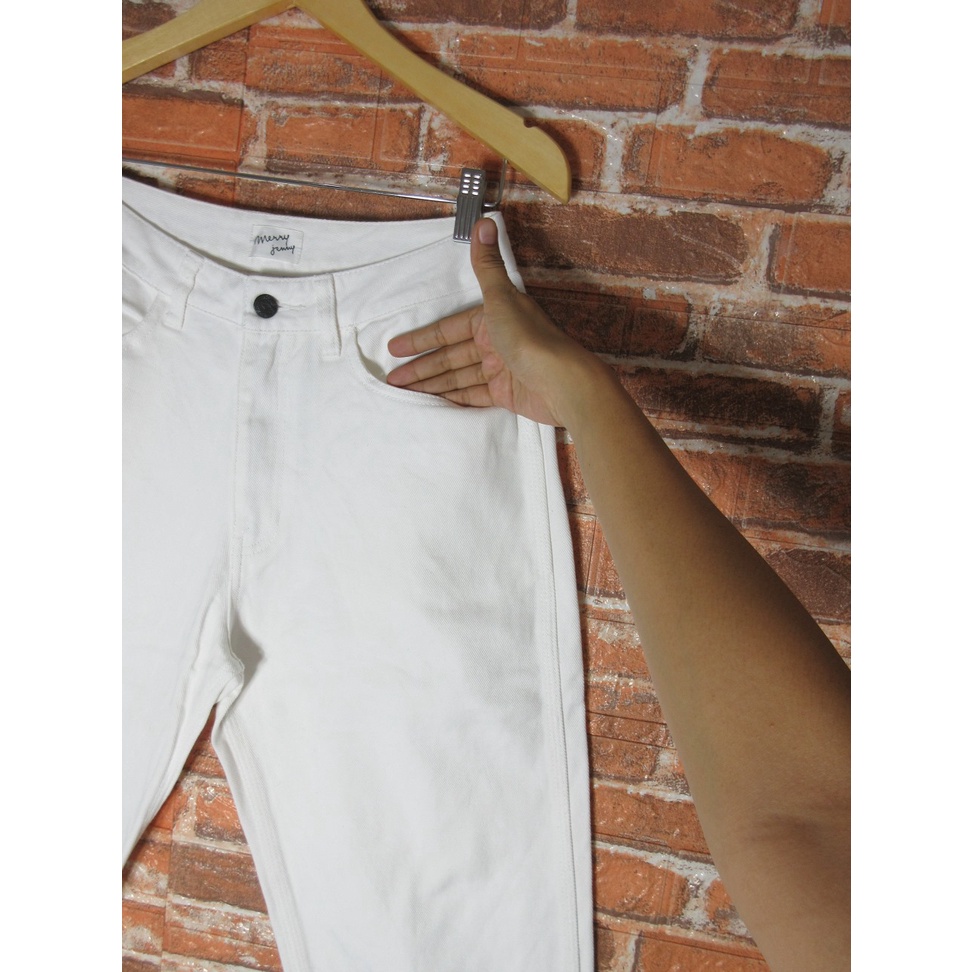 MERRY JENNY celana panjang putih HIGHWAIST OVERSIZE LONG JEANS DENIM TEBAL baggy boyfriend cewek branded Size M