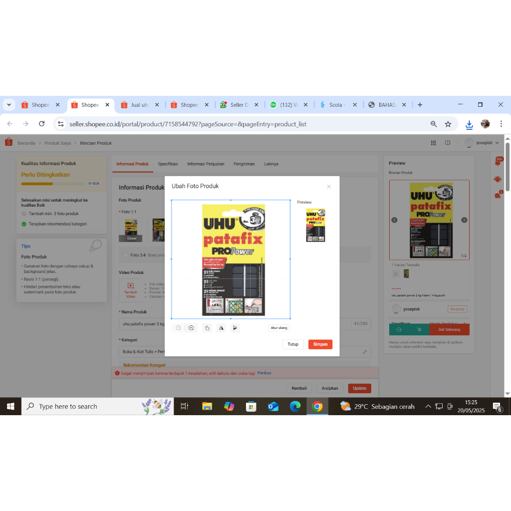 uhu patafix power 3 kg hitam / 4 kg putih
