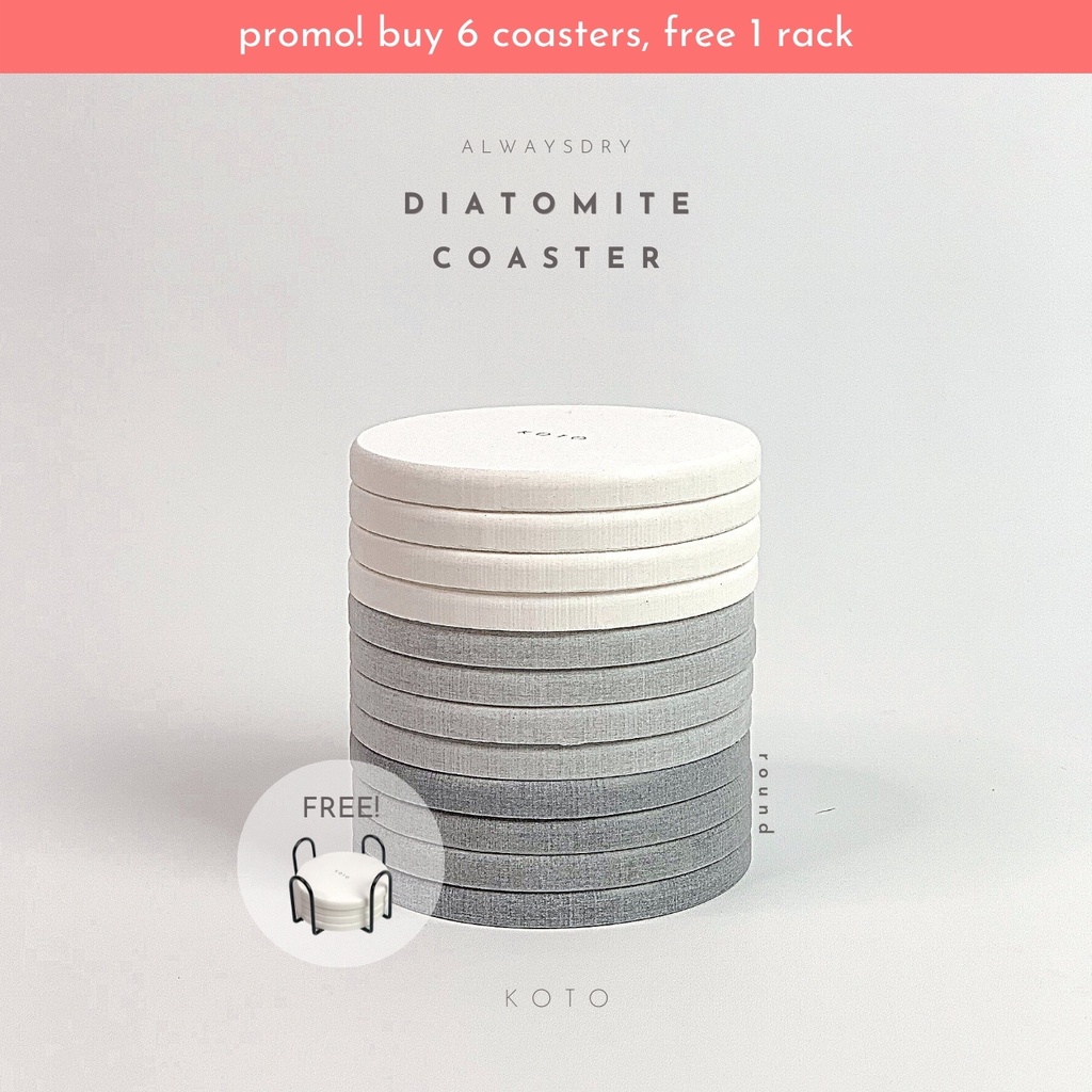 KOTO AlwaysDry Diatomite Coaster / Tatakan Gelas / Tanaman / Sabun - Round