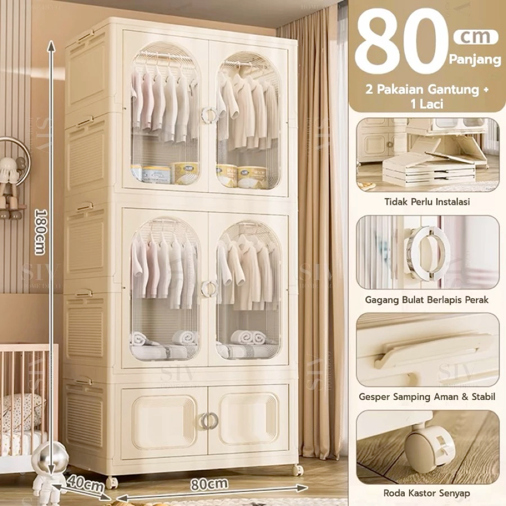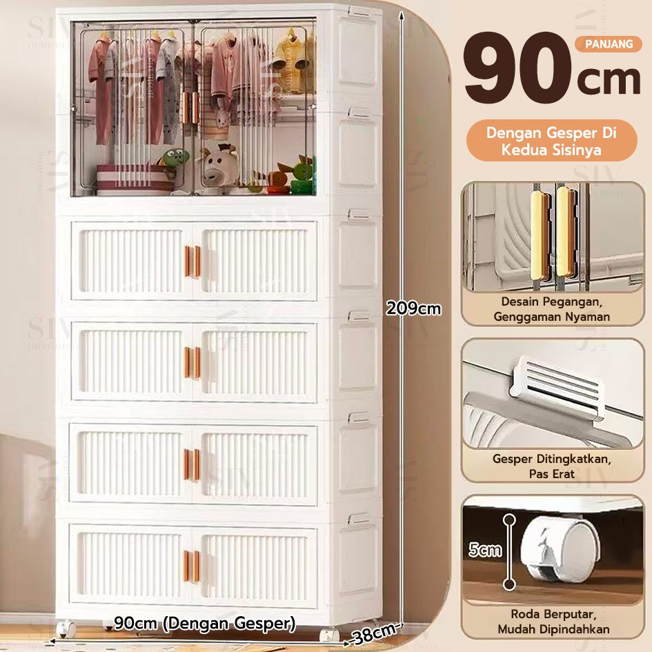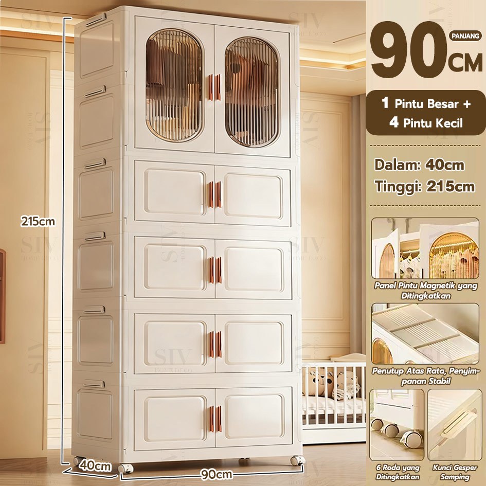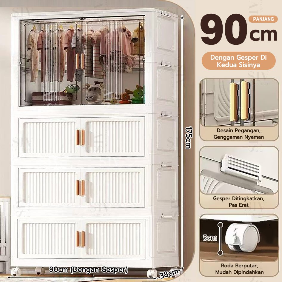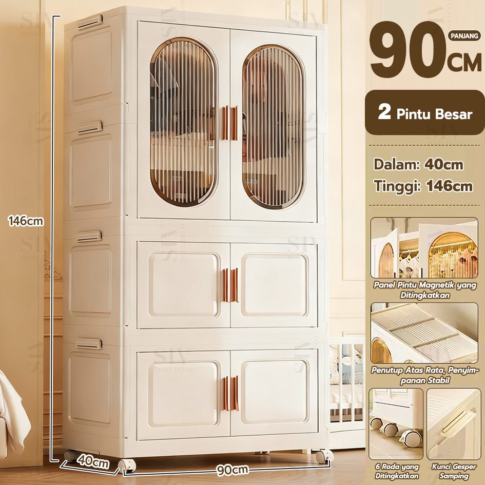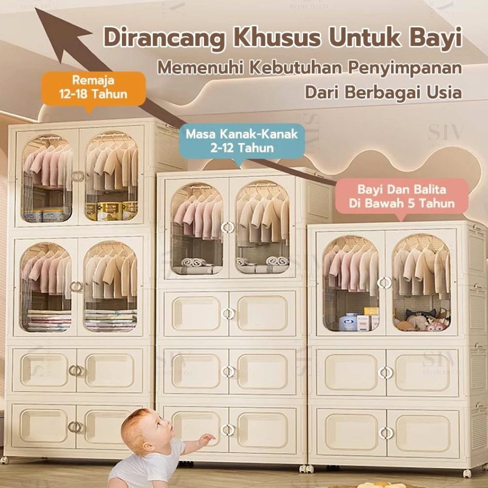 [Ekstra Tebal 90cm] SIV Lemari Baju Bayi Anak Plastik Lemari Pakaian Estetik Minimalis Dengan Roda