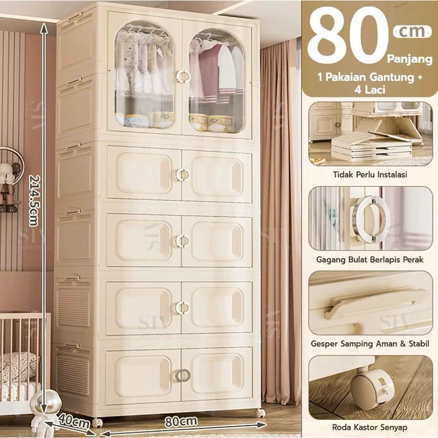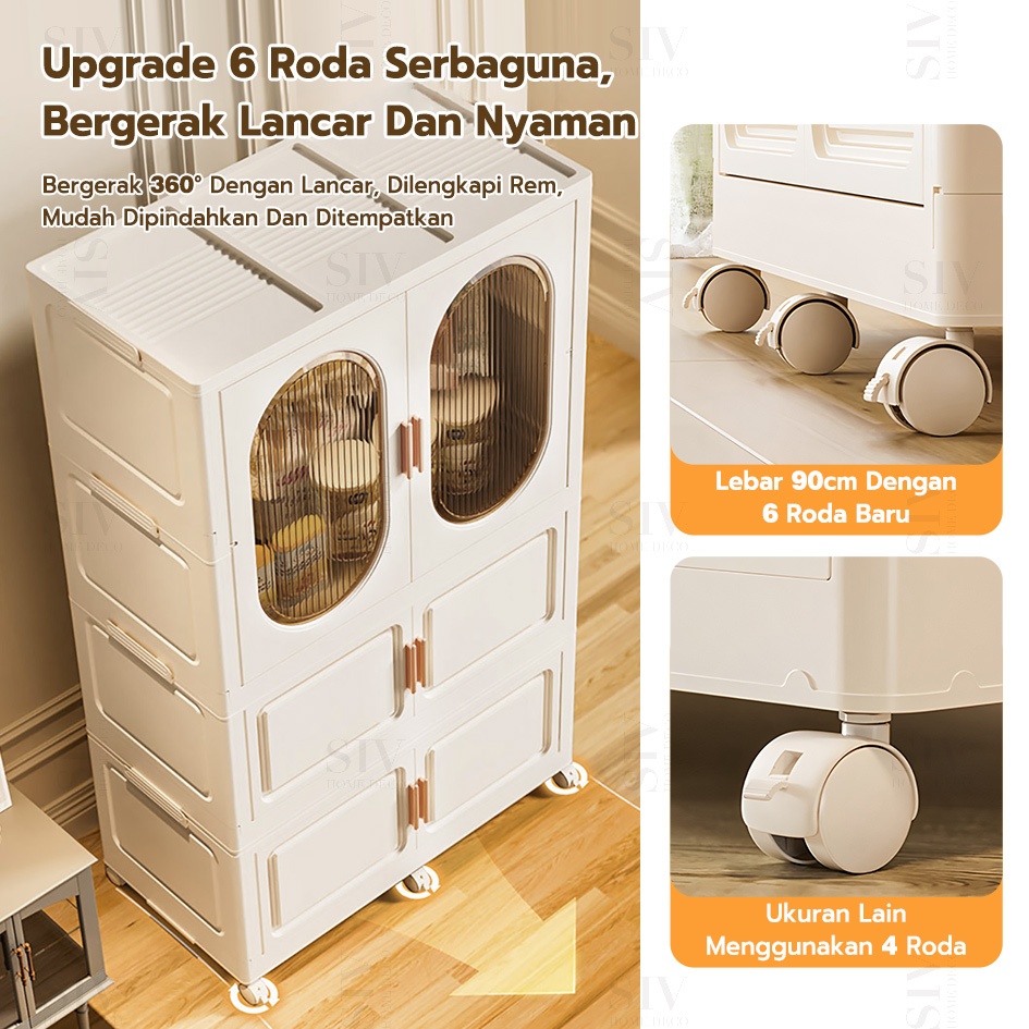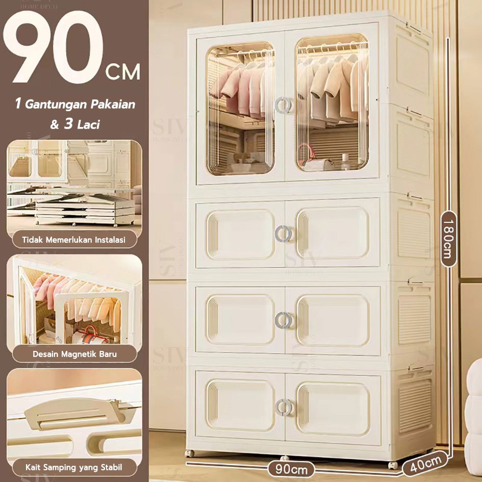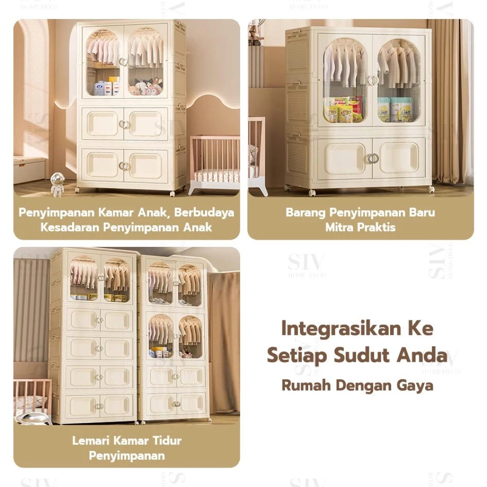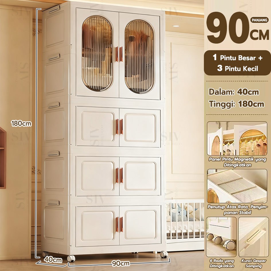 [Ekstra Tebal 90cm] SIV Lemari Baju Bayi Anak Plastik Lemari Pakaian Estetik Minimalis Dengan Roda
