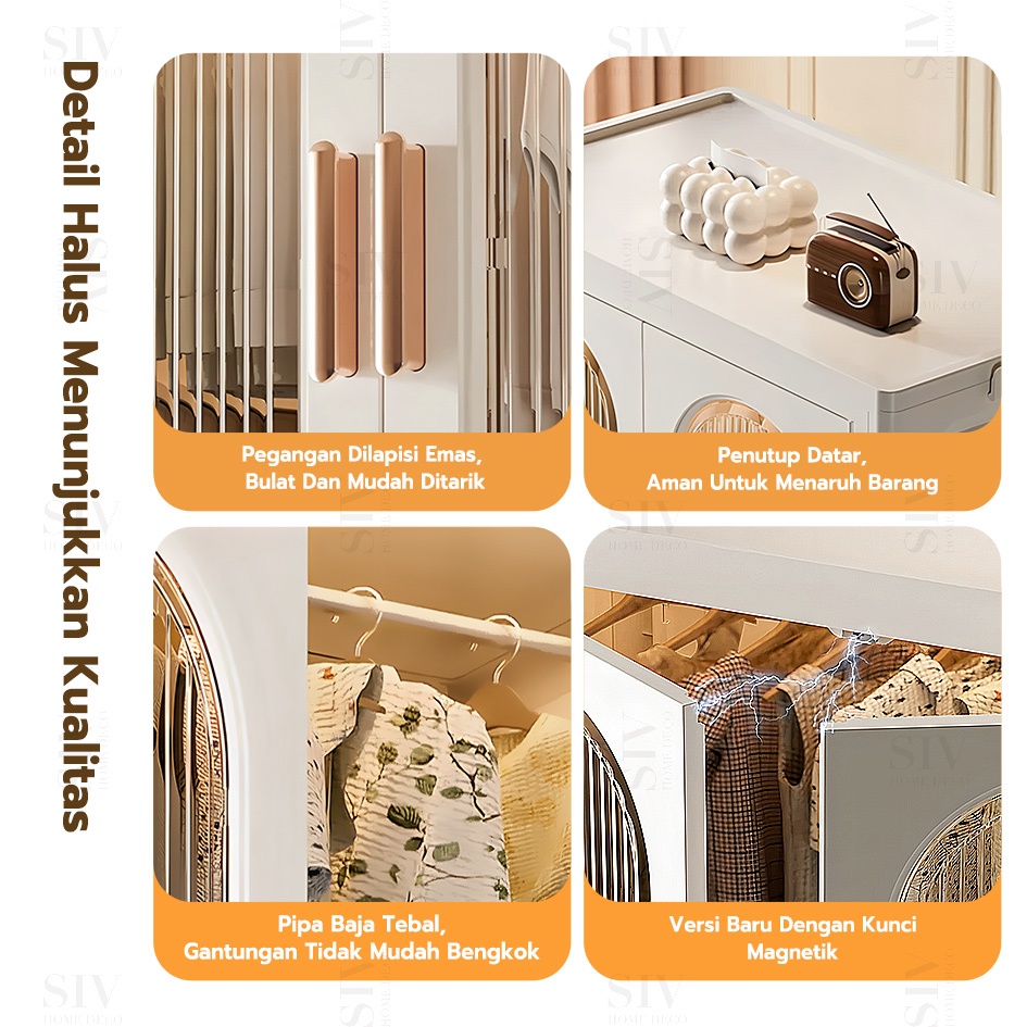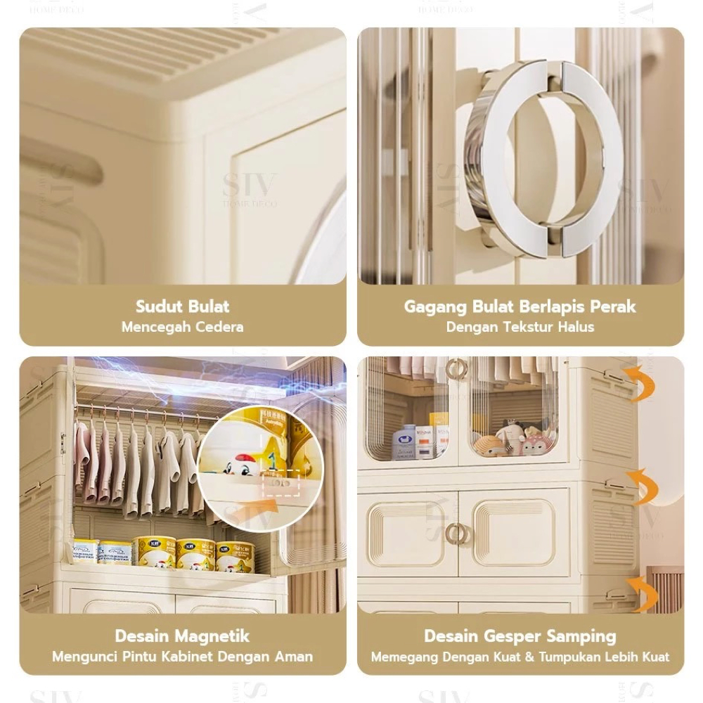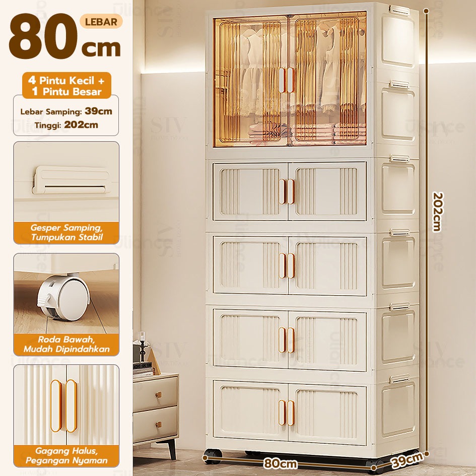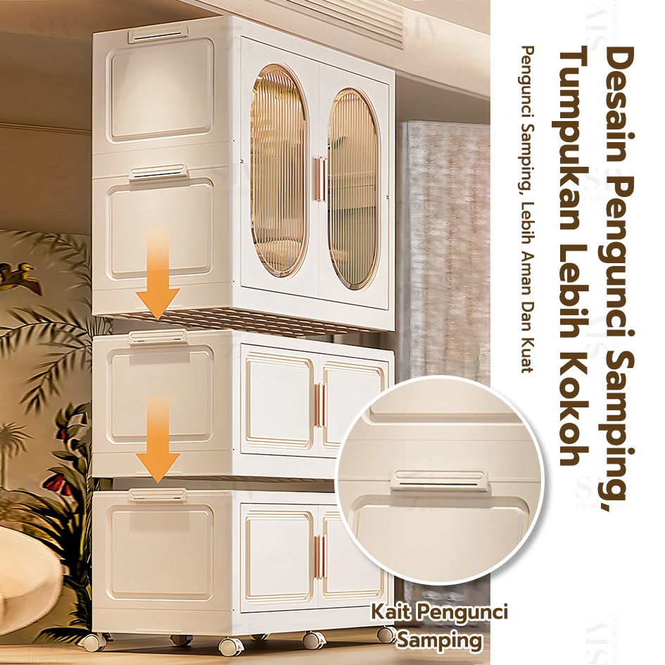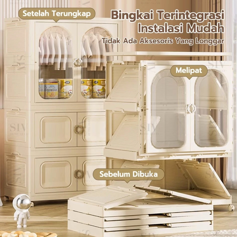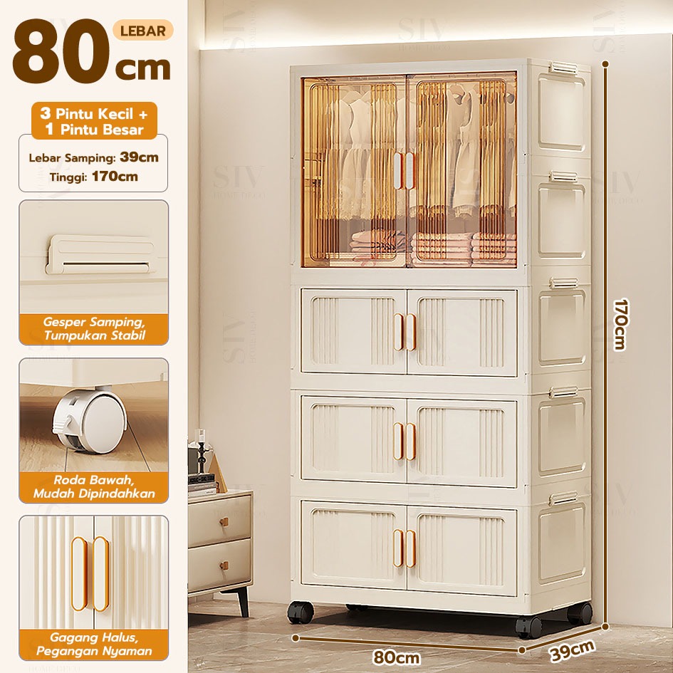 [Ekstra Tebal 90cm] SIV Lemari Baju Bayi Anak Plastik Lemari Pakaian Estetik Minimalis Dengan Roda
