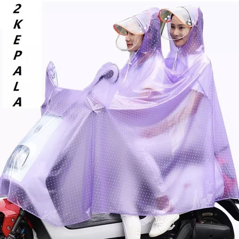 Jas Hujan Ponco 2 Kepala Bonceng Full Body / Jas Hujan Motor Dewasa Penutup Spion Seluruh Badan