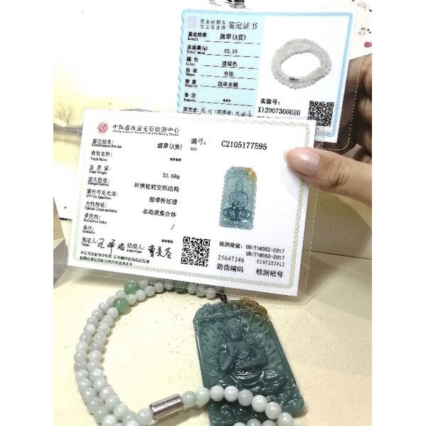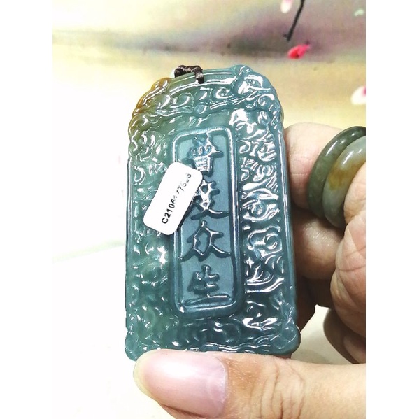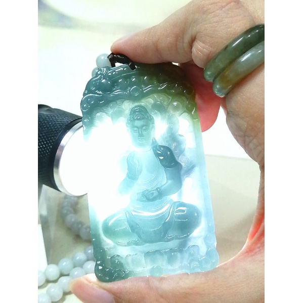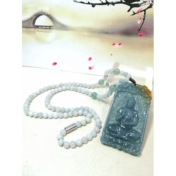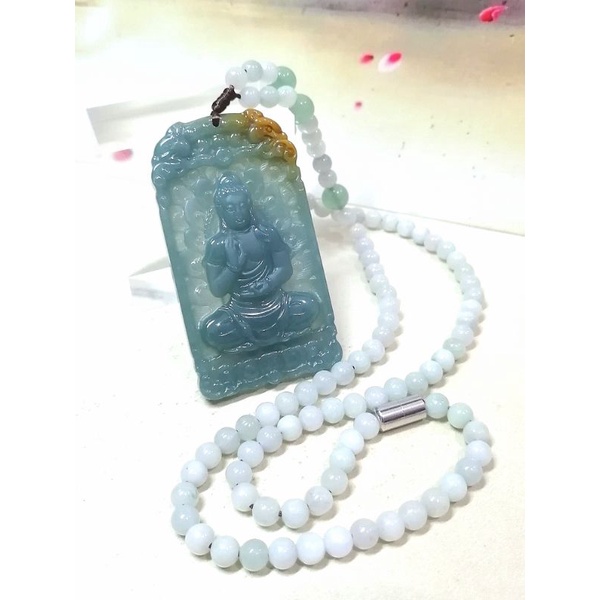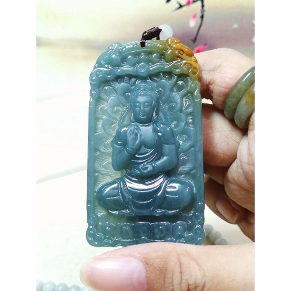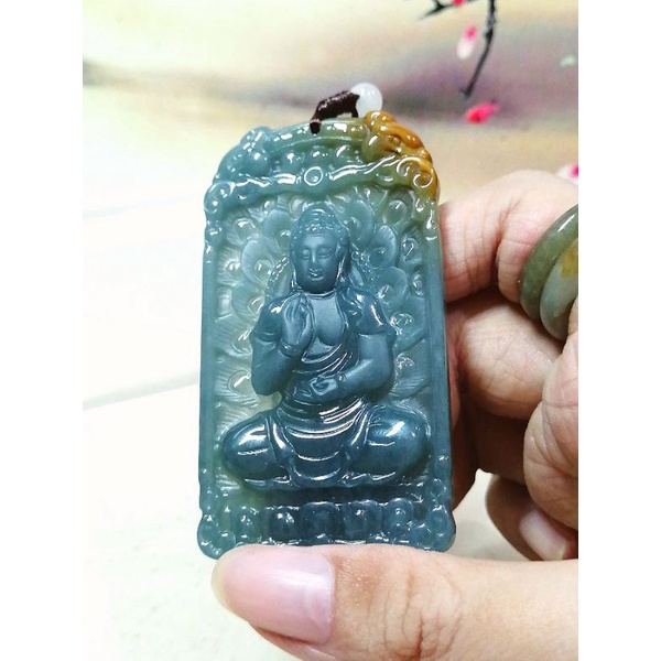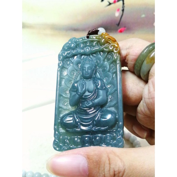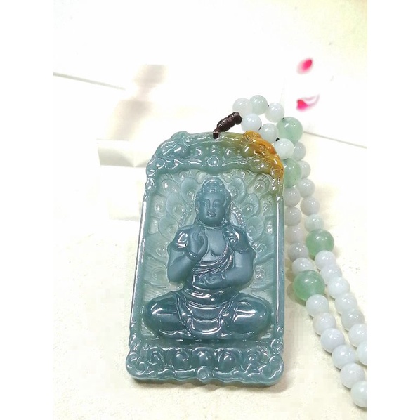 7595 0020 Liontin Giok Golden Blue Water Jadeite Sakyamuni Buddha Sertifikat Grade A