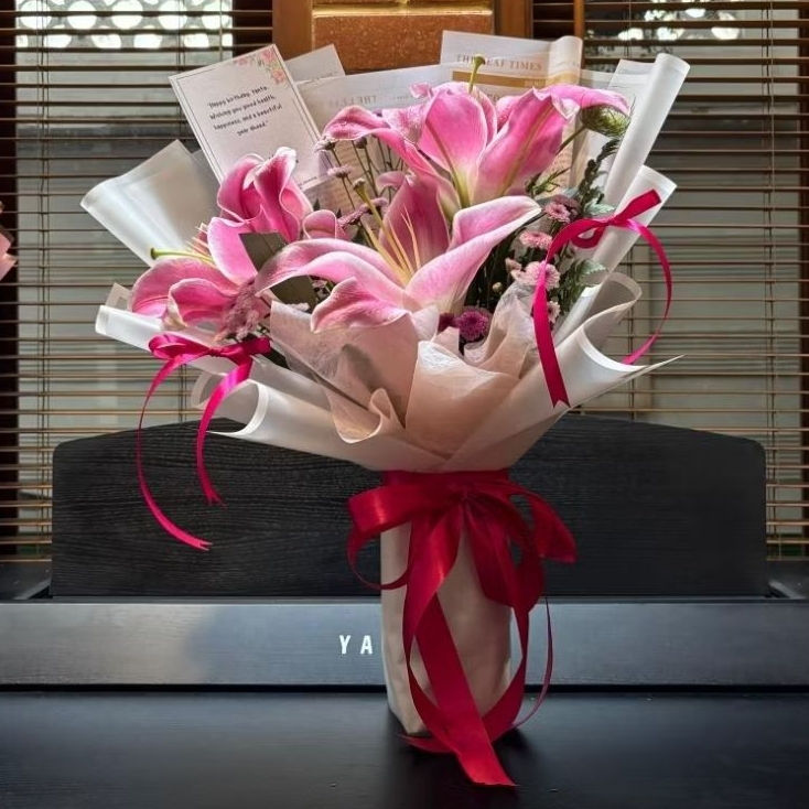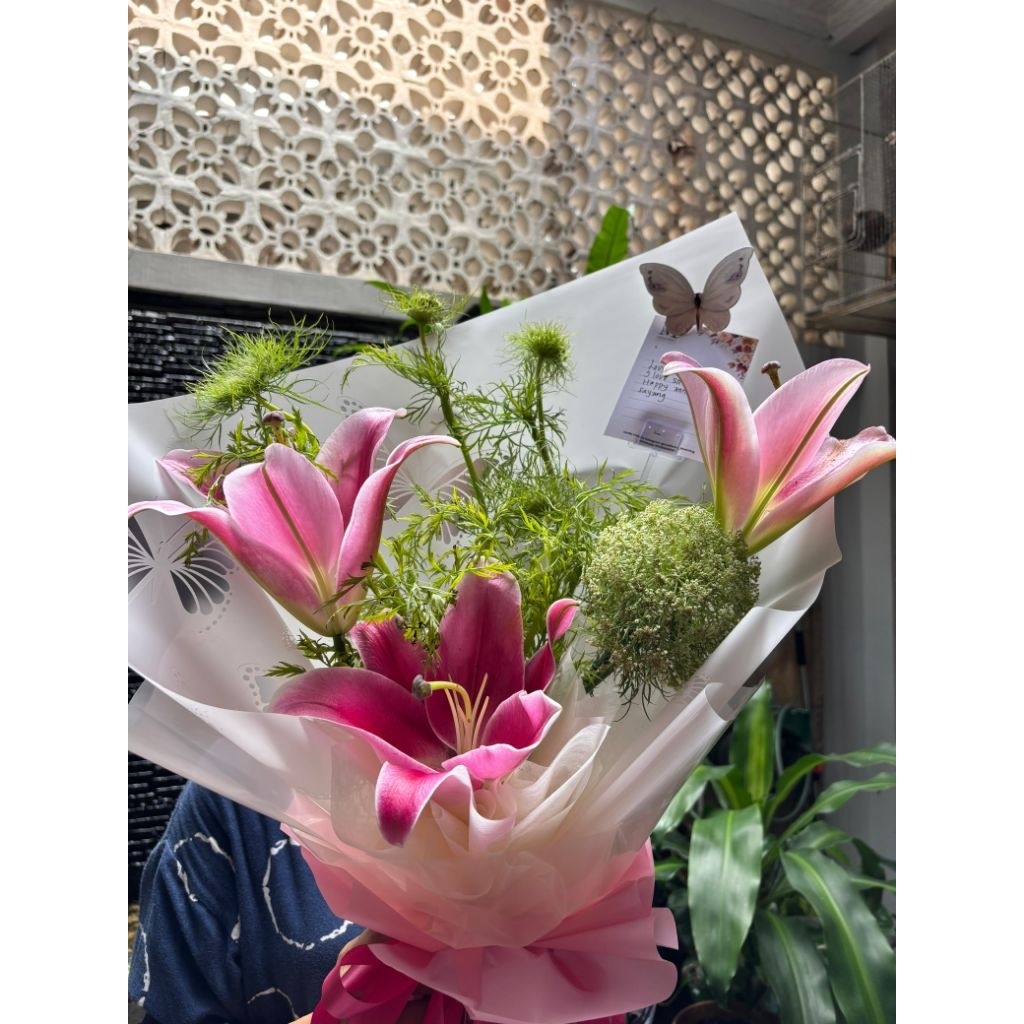 Buket Bunga Lili Fresh Murah 3 Kuntum / Fresh Lily Flower Bouquet / Buket Anniversary Birthday Gift Graduation