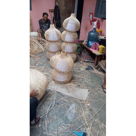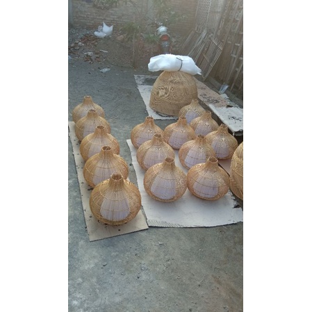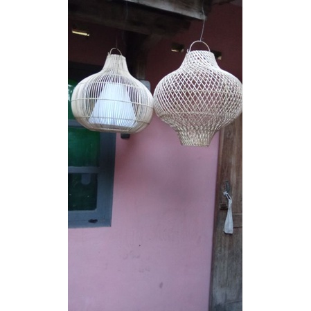 Kap Lampu Gantung Rotan kuncup kain (pengiriman via cargo chat admin)