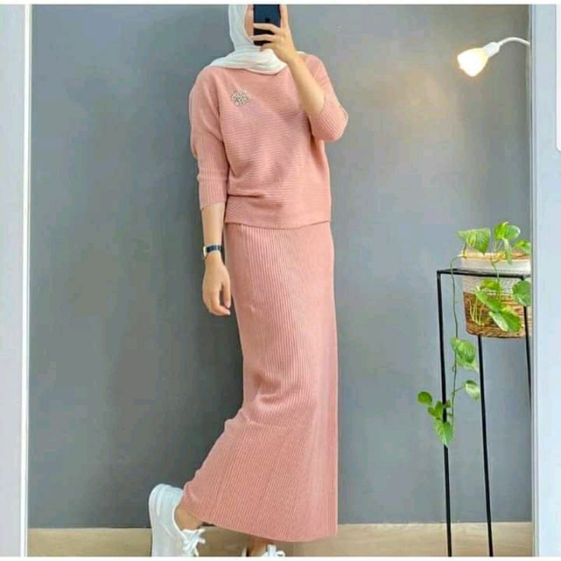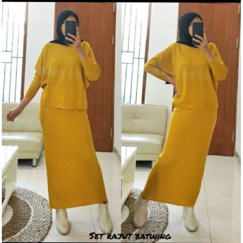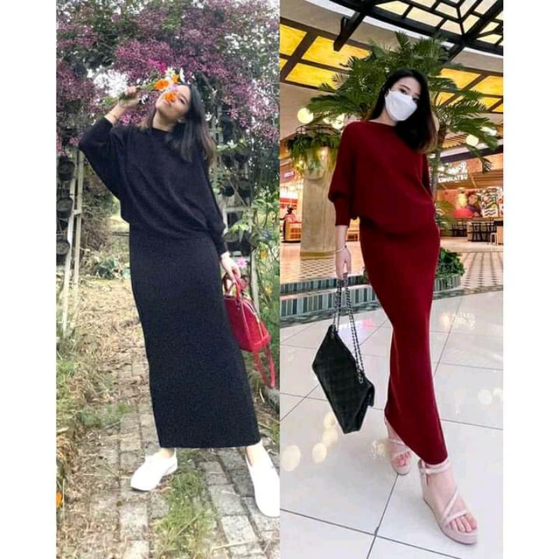 Setelan Rok Rajut Batwing / One Set Baju Rajut / Atasan Wanita Rajut / Rok Rajut Wanita / Batwing Knit / Setelan Wanita Rajut