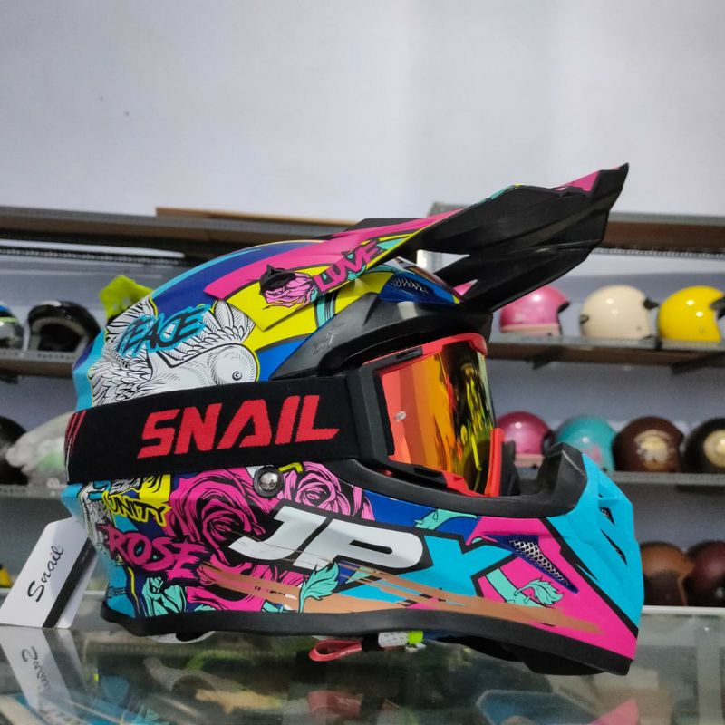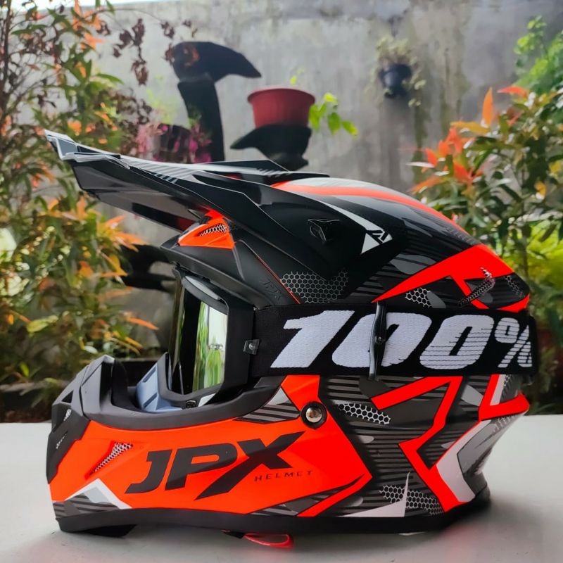 HELM TRAIL JPX CROSS FULL MOTIF PLUS KACA GOGLE