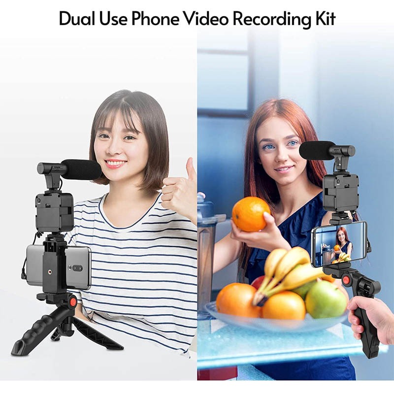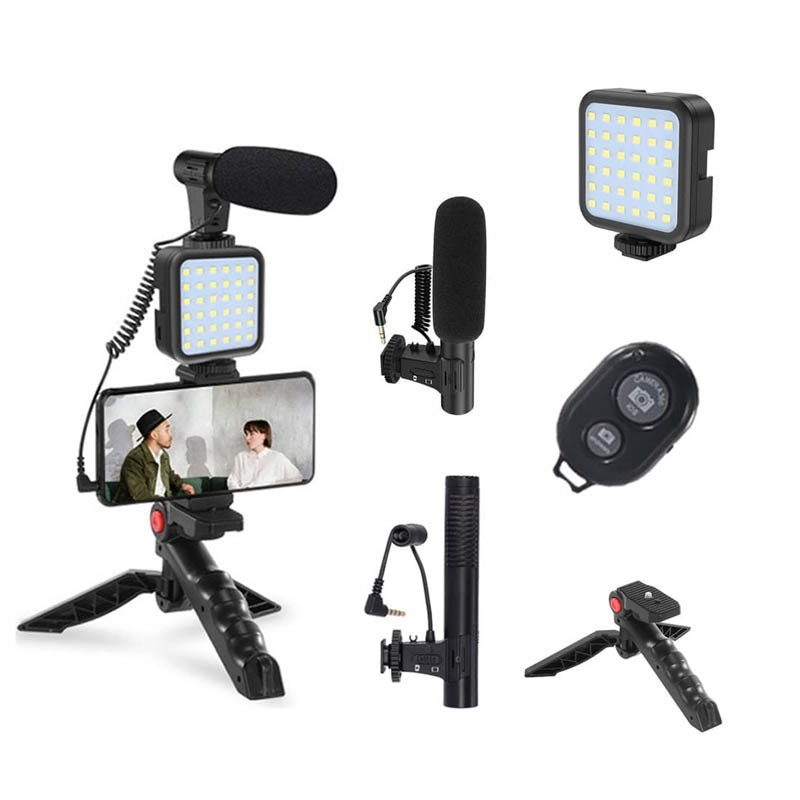 TRIPOD 3in1 Vlogger Youtuber Kit Flexible Phone HP Lampu LED Vlog Mic Microfon esign Portable Portabel Heigh Tripod Stand Standing Microphone Stabil Stable Penyangga Adjustable Phone Holder
