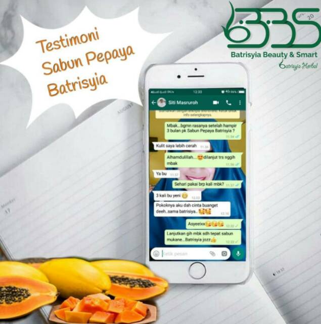 Sabun wajah sabun pepaya batrisyia mencerahkan bersih segar cocok untuk kulit sensitif