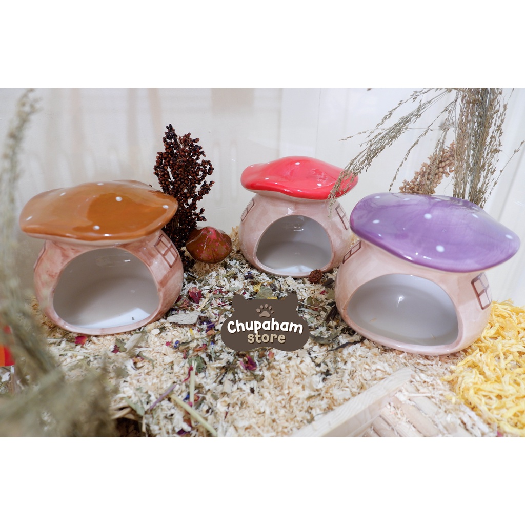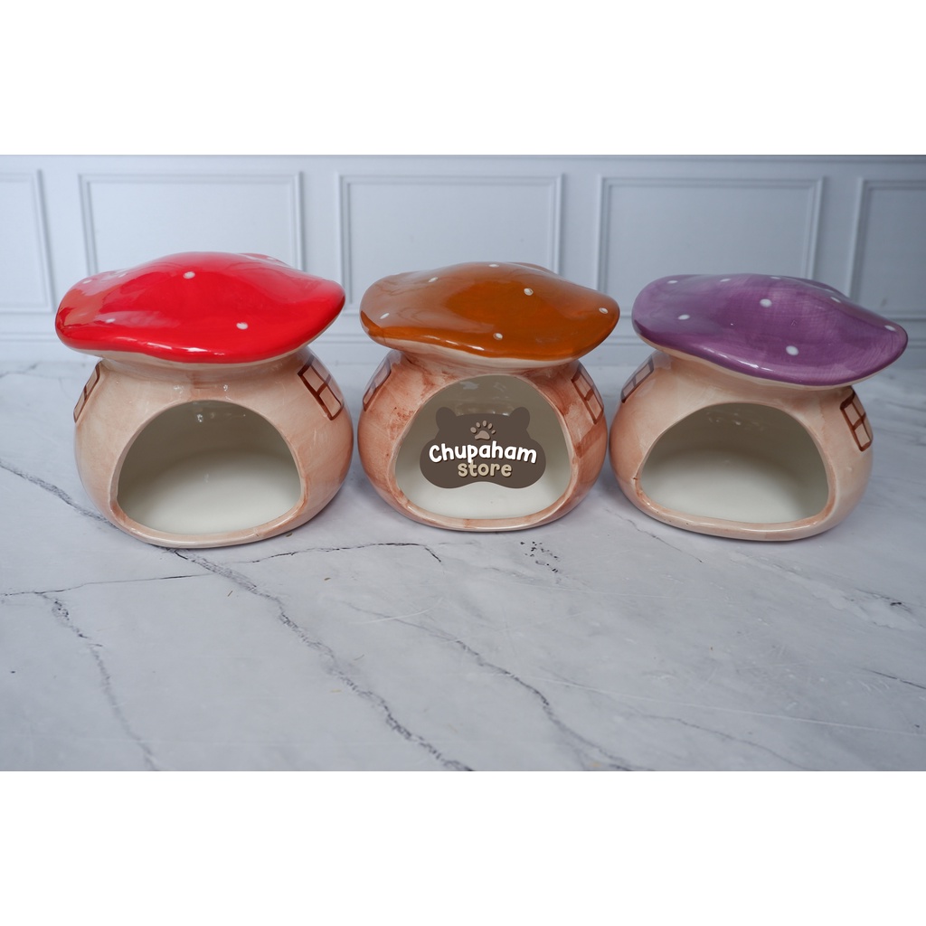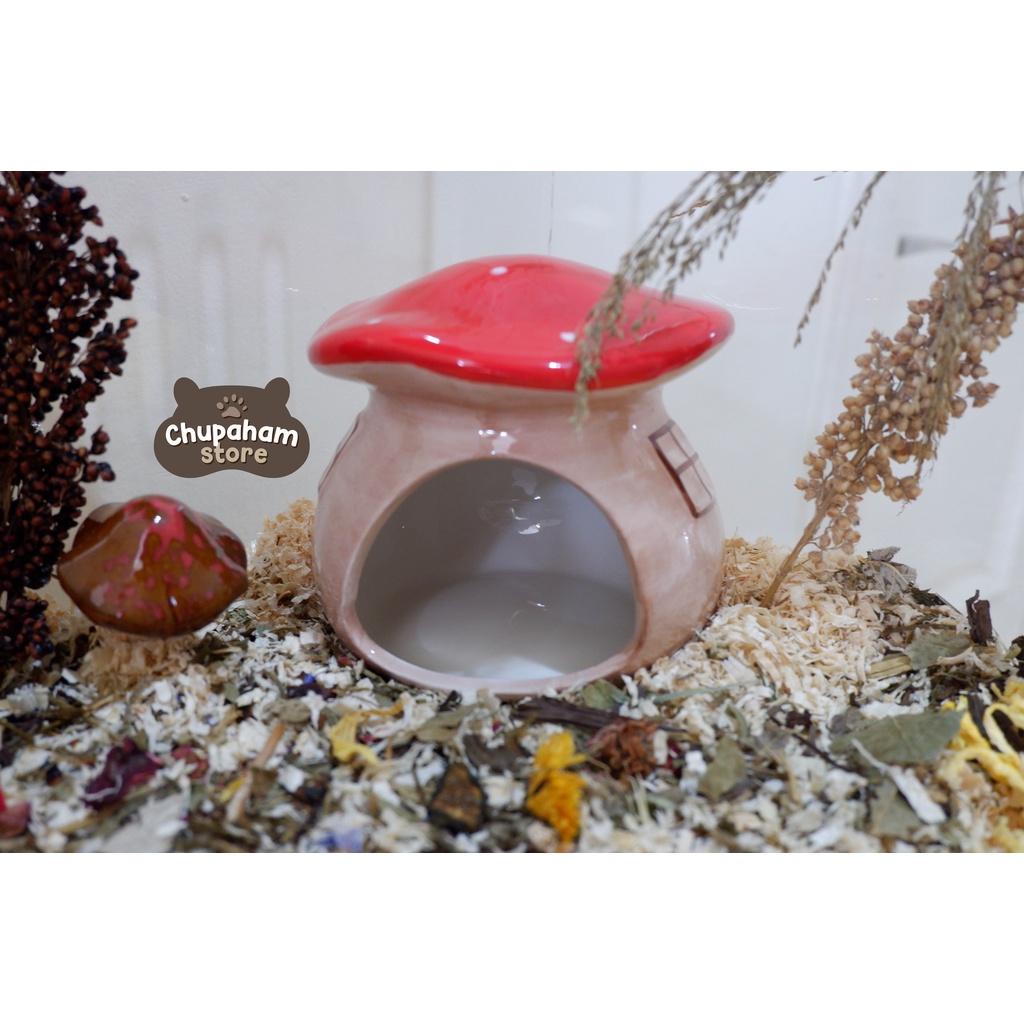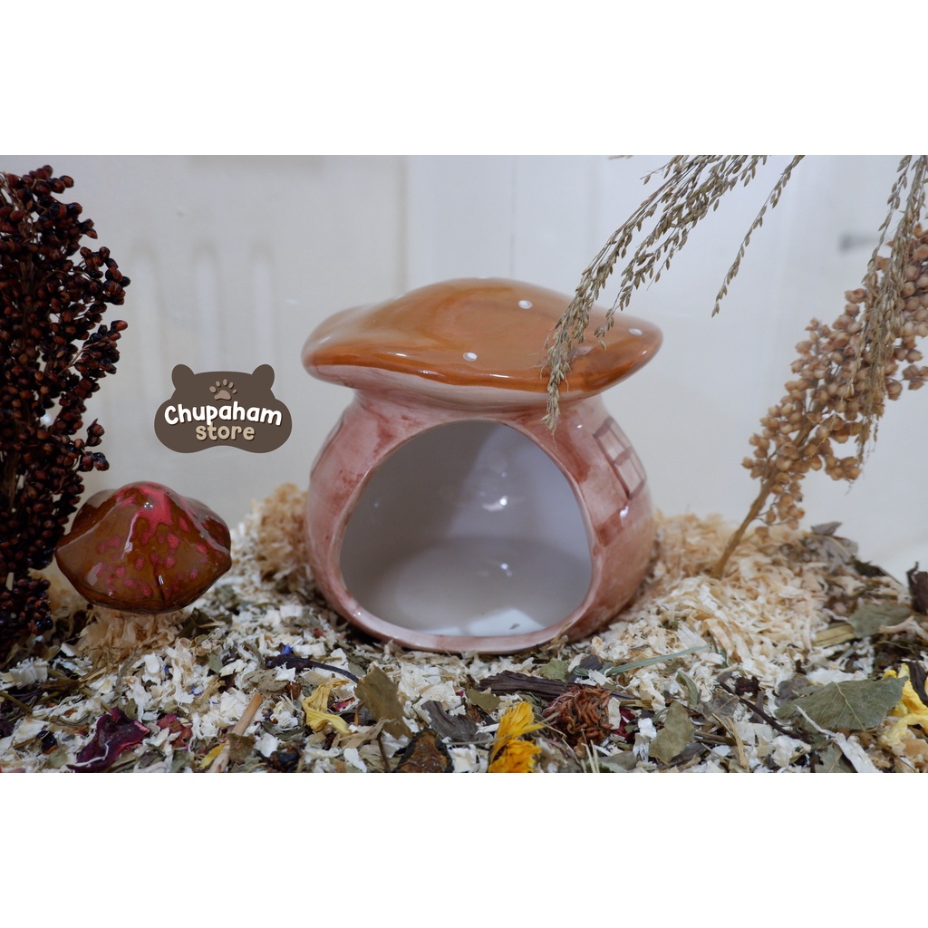 Cremini Mushroom Hideout / Rumah Keramik Kandang Hamster Jamur Cooling Pad