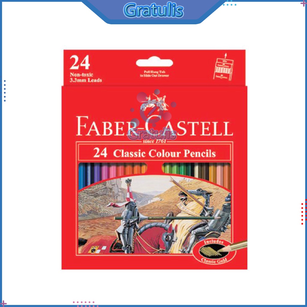 PENSIL WARNA PANJANG FABER CASTELL [24 COLOUR] / ALAT TULIS GAMBAR PENCILS CLASSIC / PENSIL MEWARNAI FABER CASTEL / PERLENGKAPAN SEKOLAH / PENSIL WARNA LENGKAP PABER KASTEL