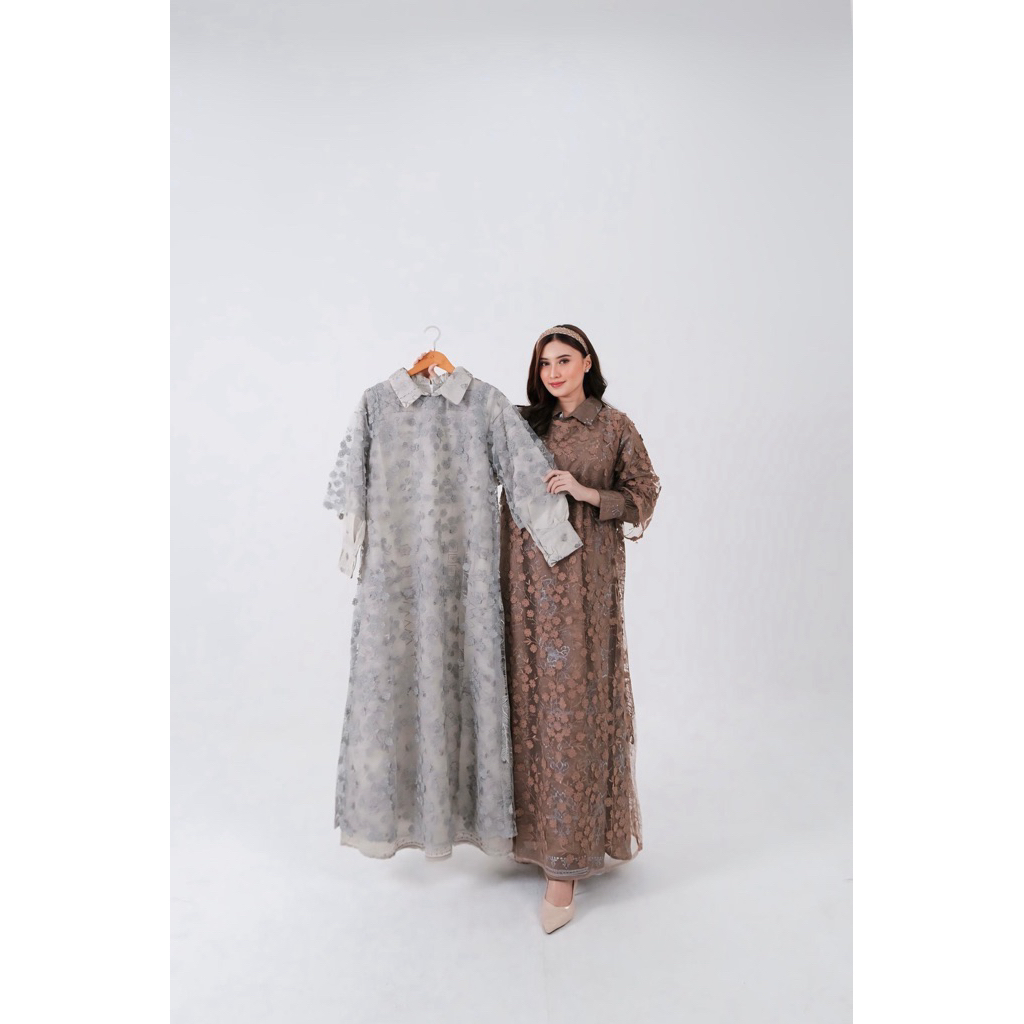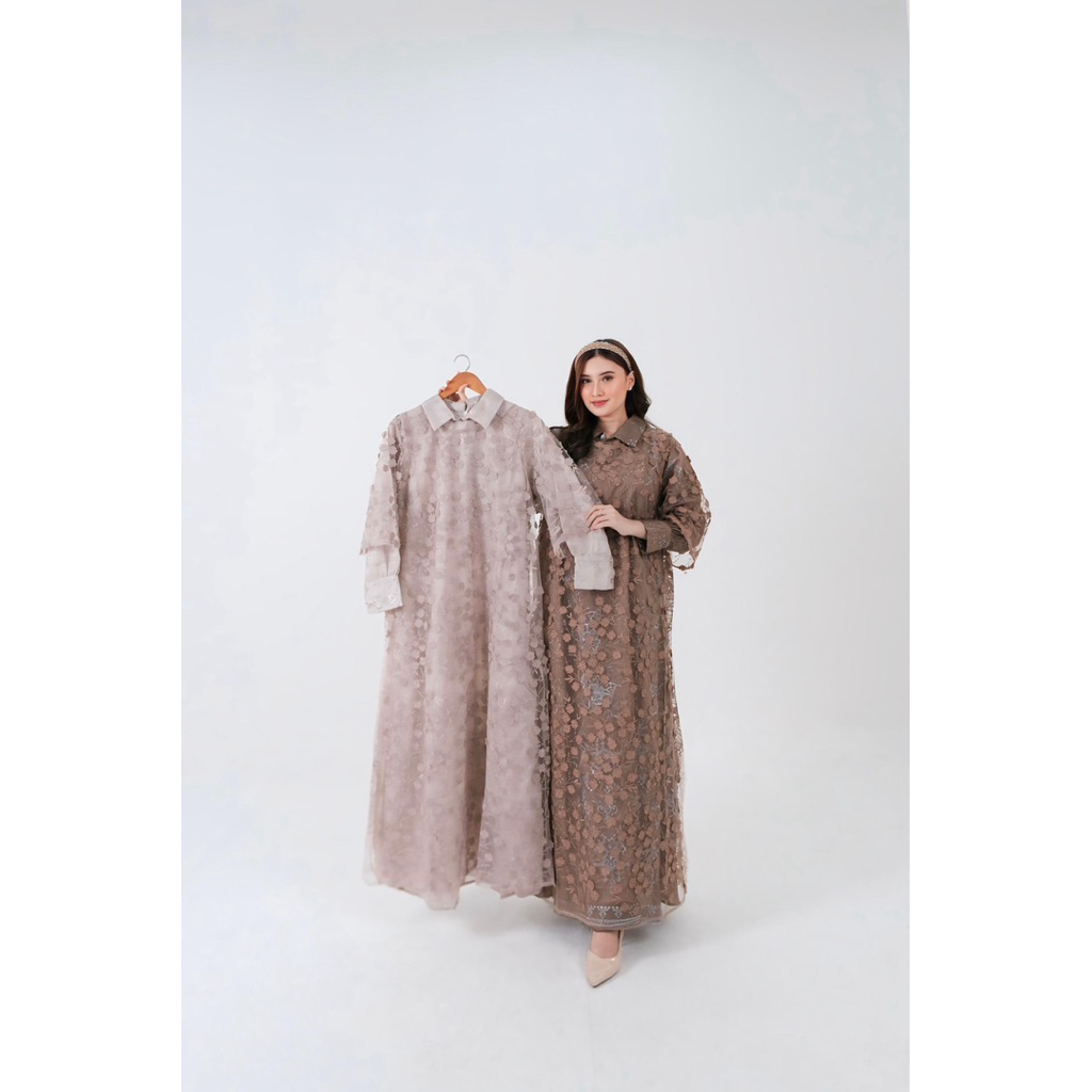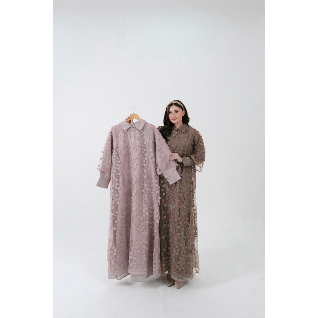 Gamis OMG Inner Outer Brokat Mewah | Dress Wanita Anggun & Elegan