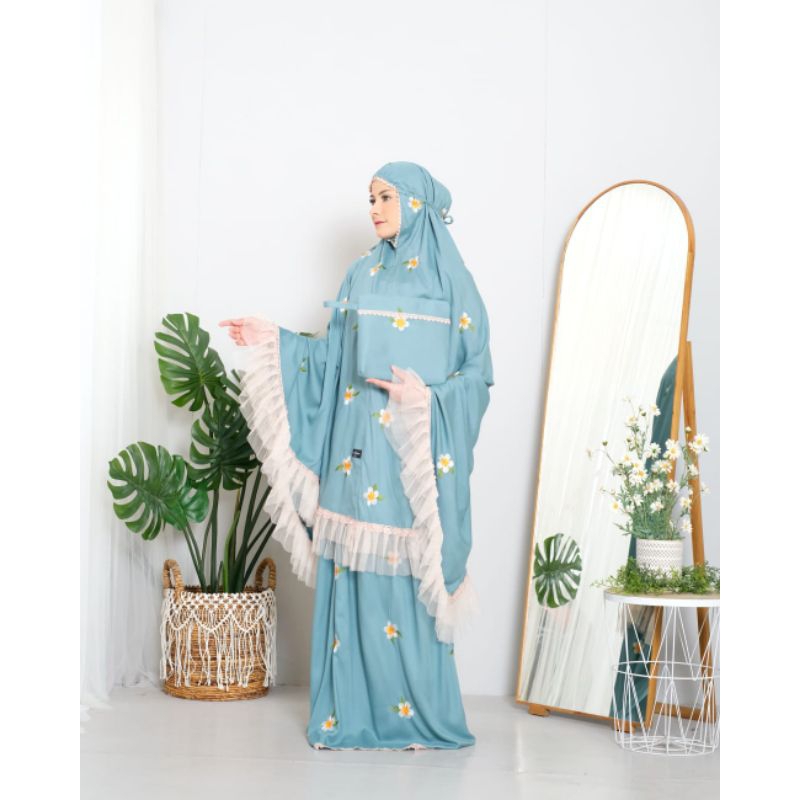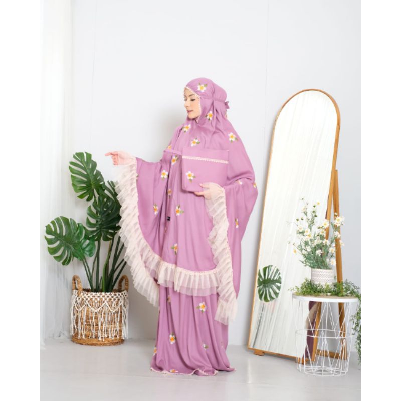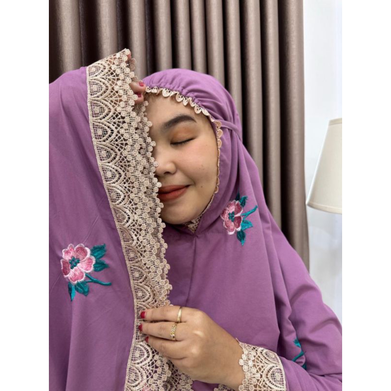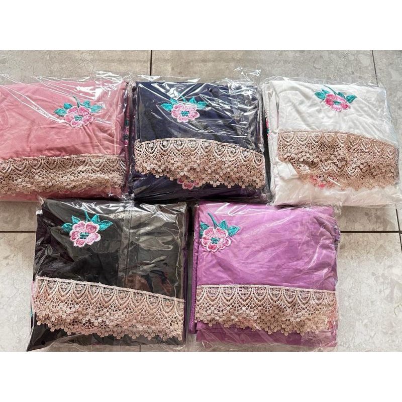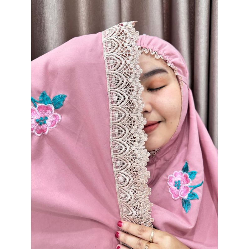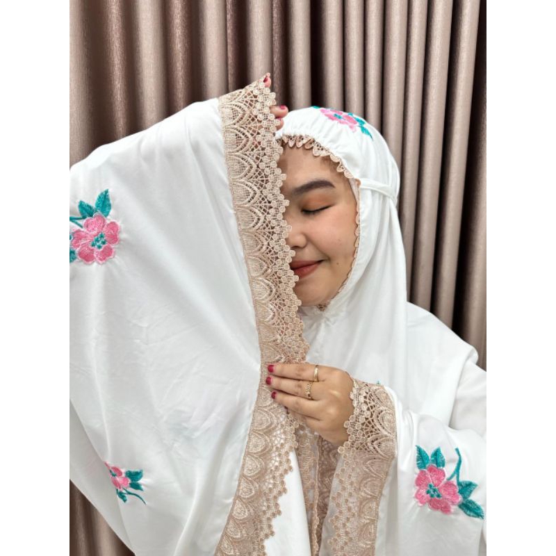 Mukena Dewasa Rayon Premium Jumbo Mahalini Motif Bordir Bunga Terbaru 2024