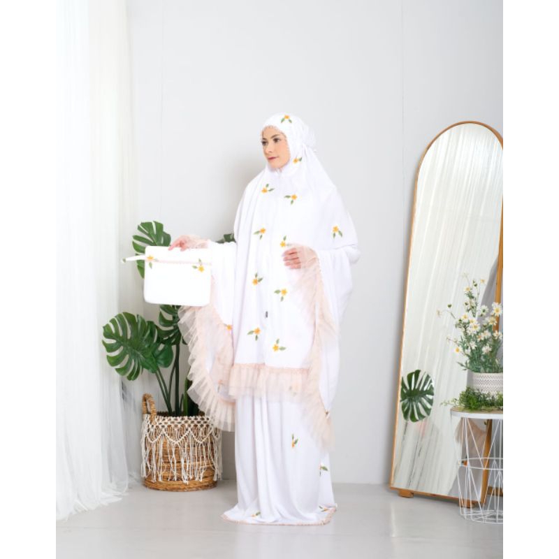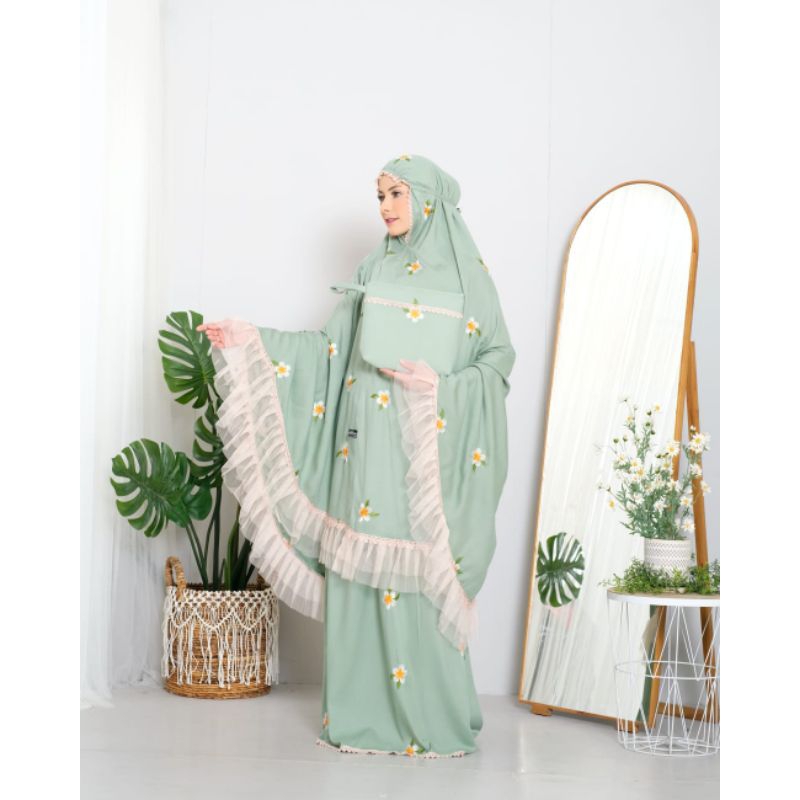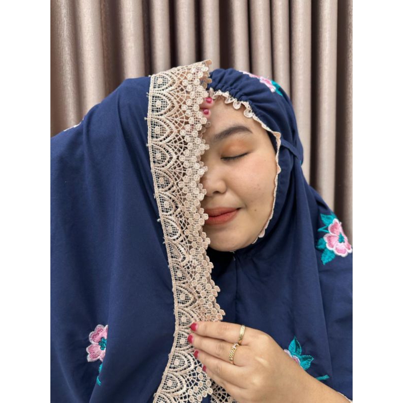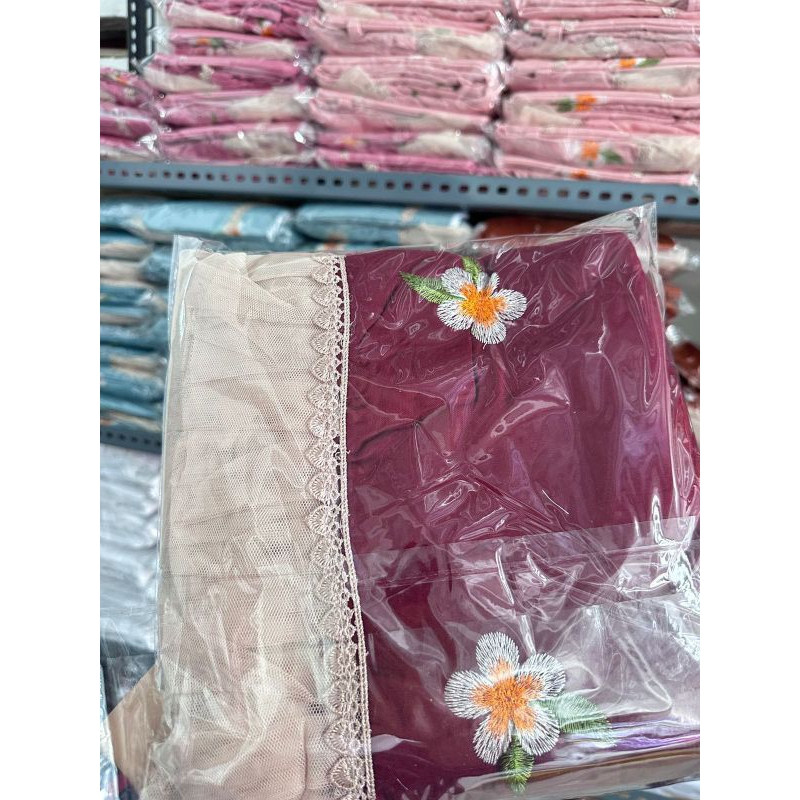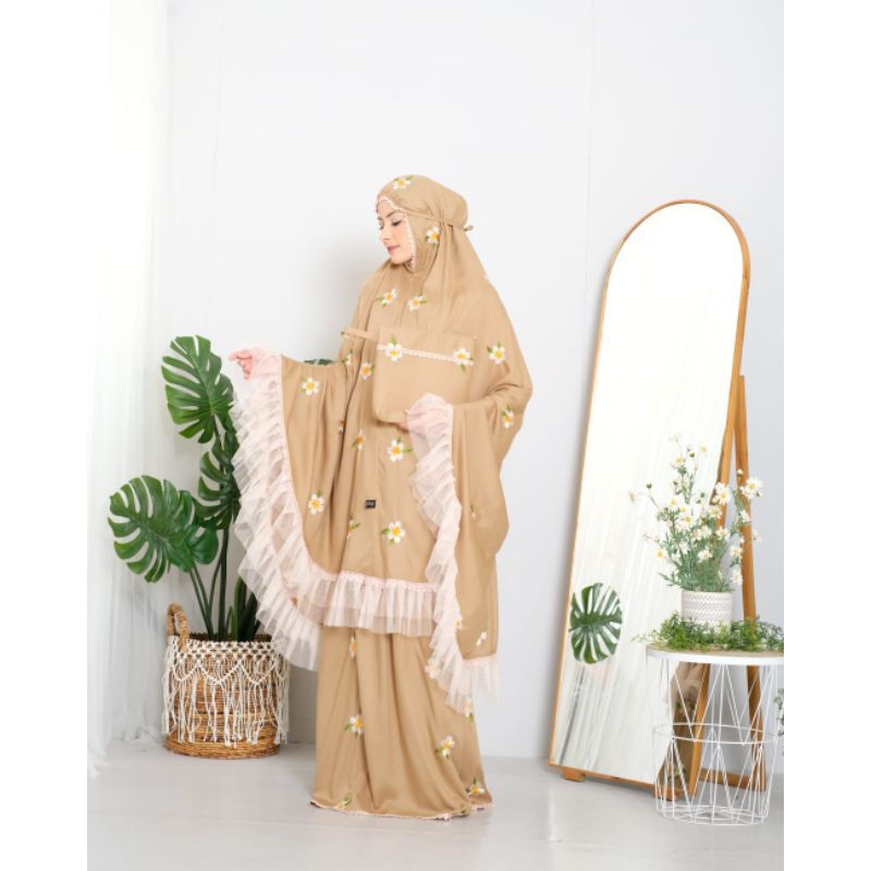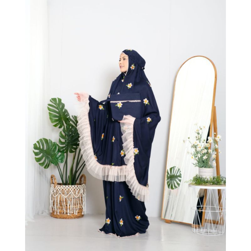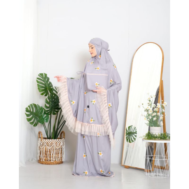 Mukena Dewasa Rayon Premium Jumbo Mahalini Motif Bordir Bunga Terbaru 2024