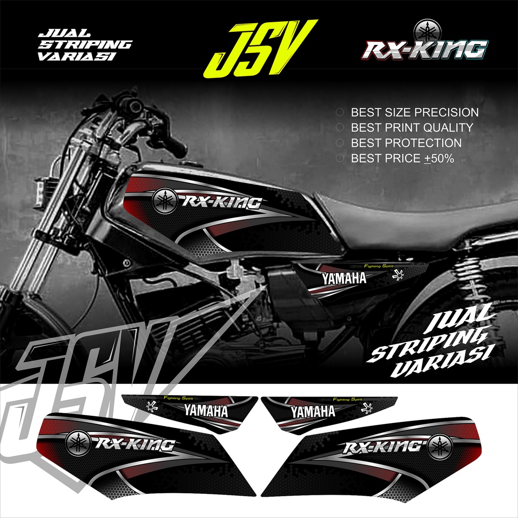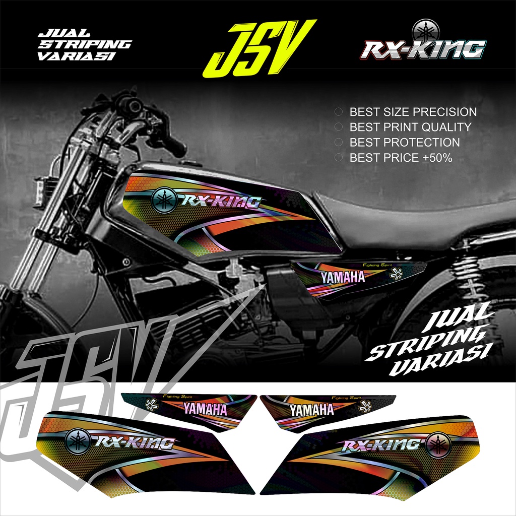 Stiker Motor YAMAHA RX KING New Variasi VENOM Striping Sticker Lis Aksesoris Original Cobra Carbon Racing Costum Standar Ori Bahan Vinyl Hologram 1997 2002 2003 2004 2005 2006 2007 2008 Hitam Merah Biru Gold