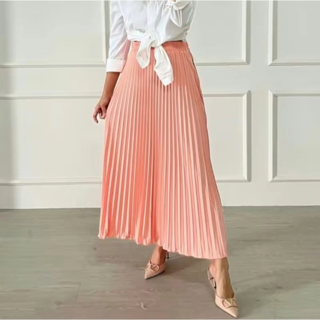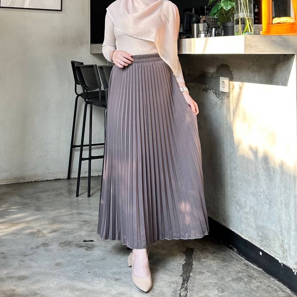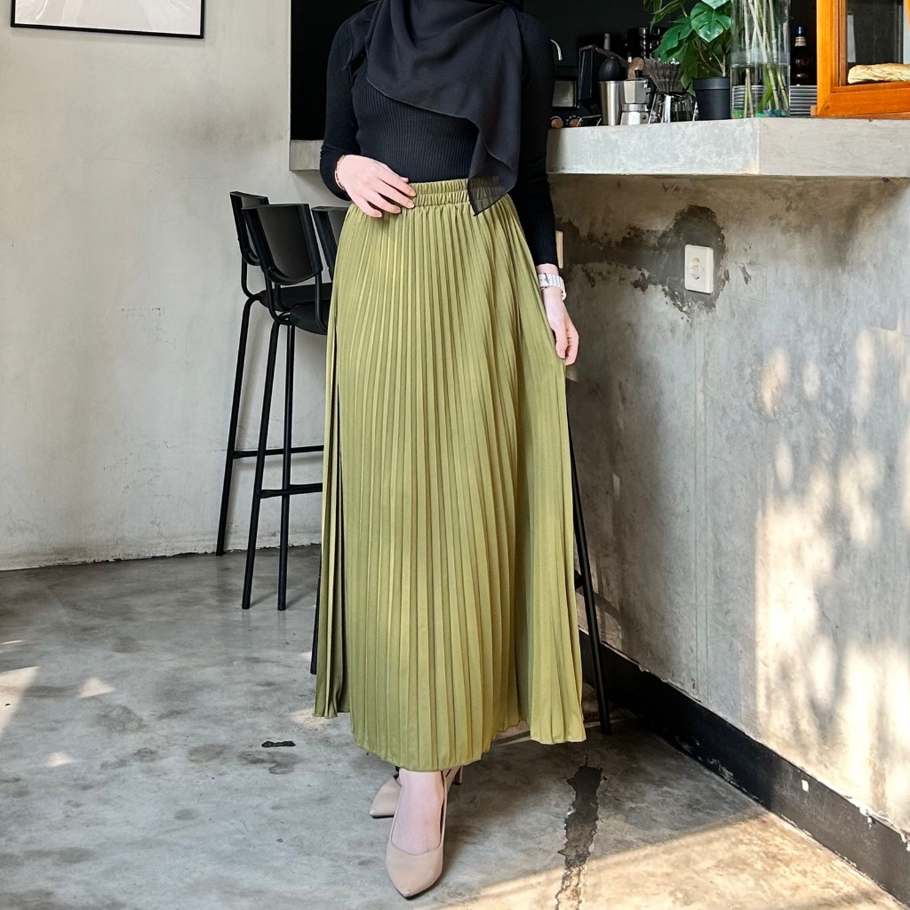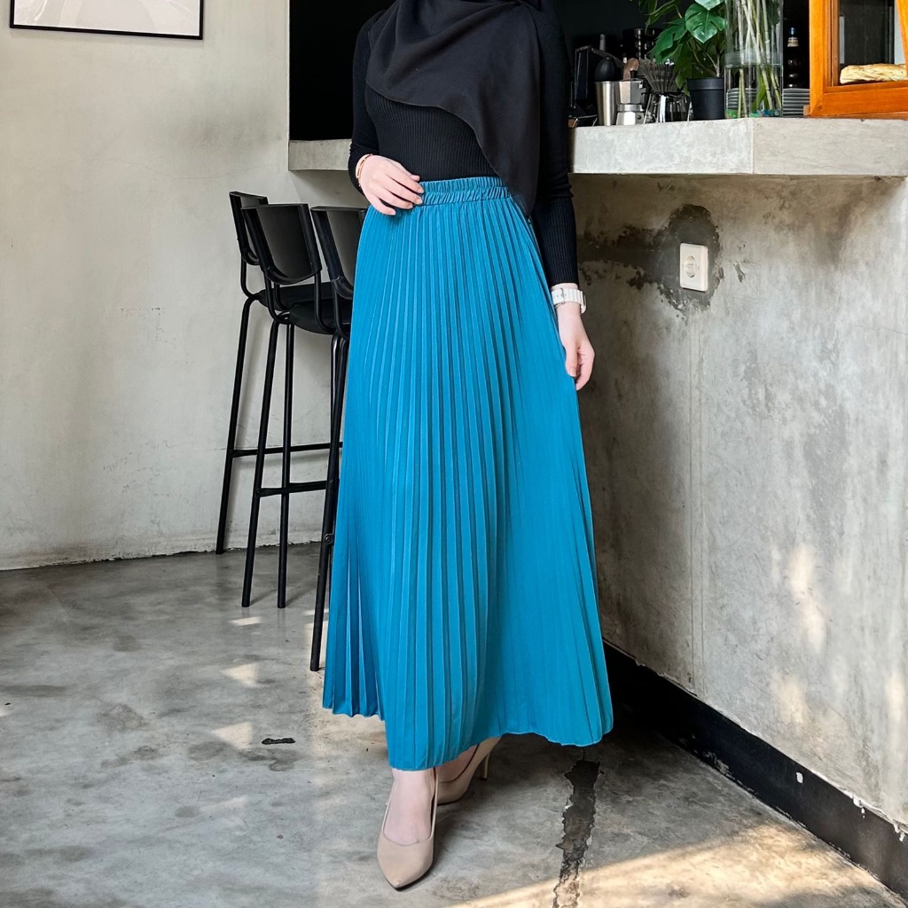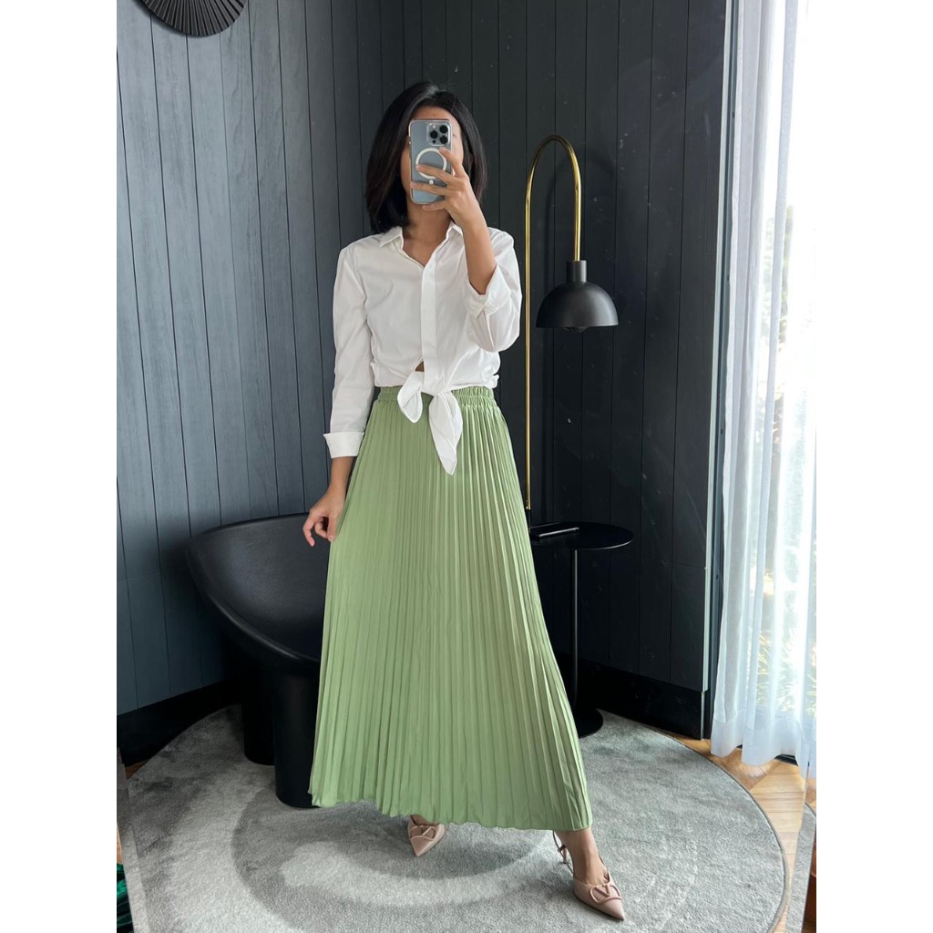 Rok Plisket Mayung Polos Panjang Premium Putih Hitam – Pleated Skirt Wanita HFStore
