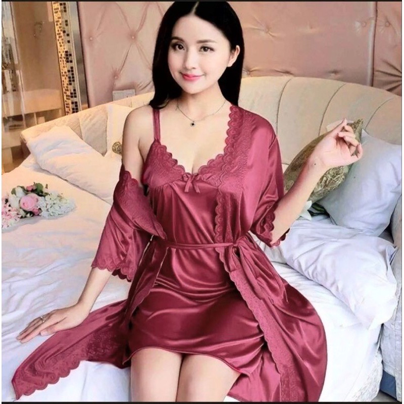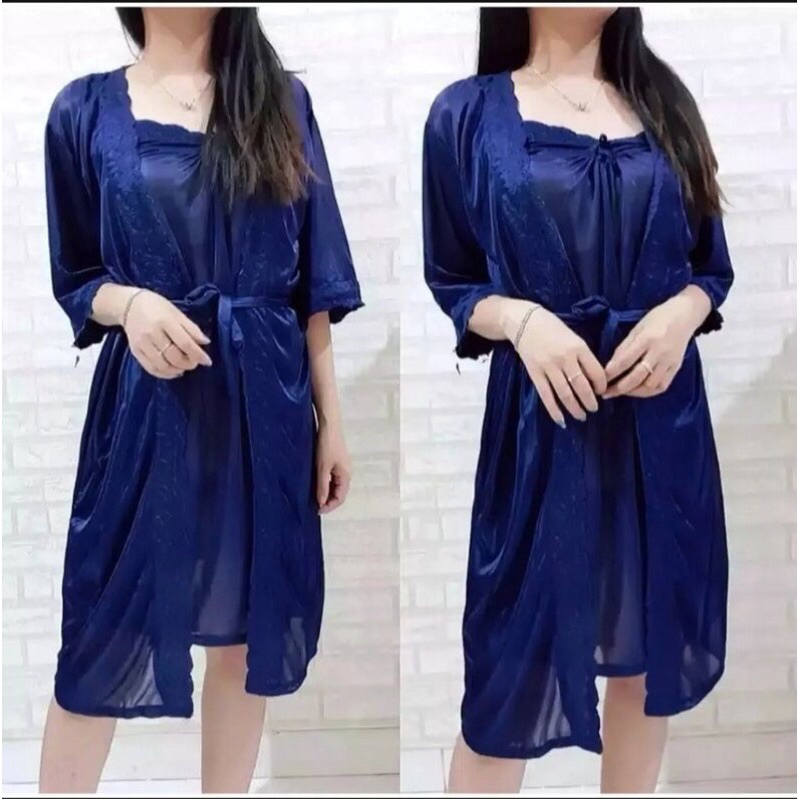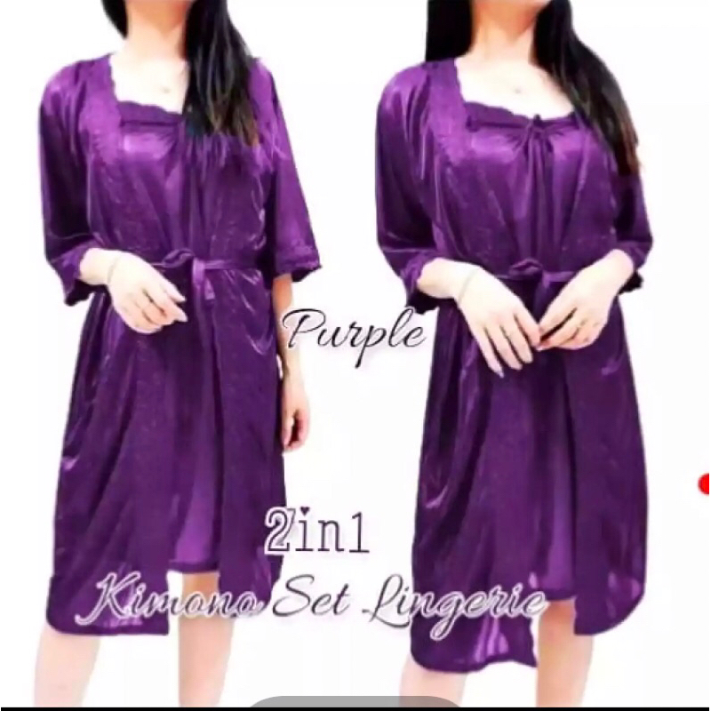 Baju tidur wanita kimono tricot 2in1 / lingerie sexy size L dan XXL