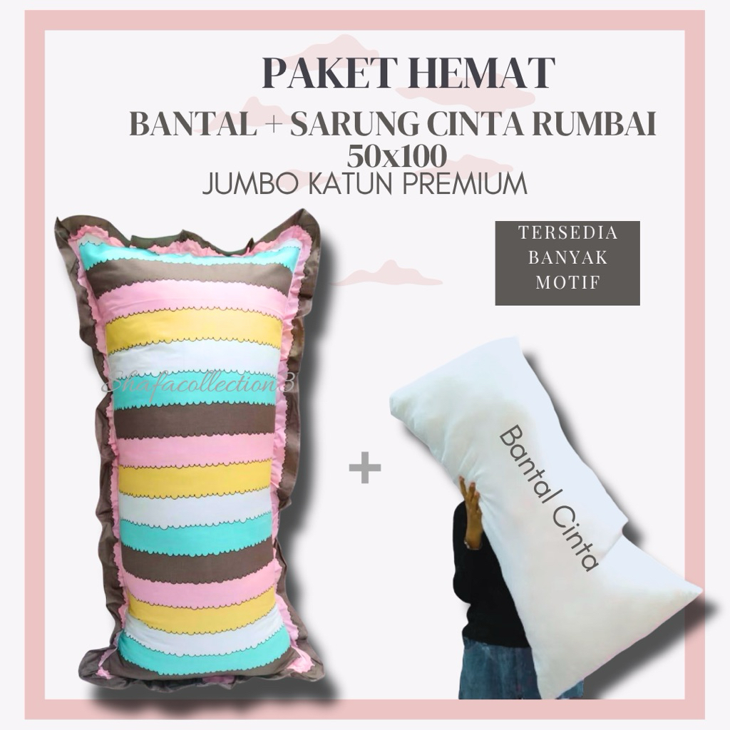 PAKET HEMAT BANTAL + SARUNG BANTAL CINTA PREMIUM JUMBO 50x100
