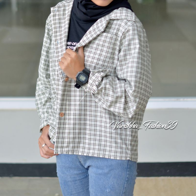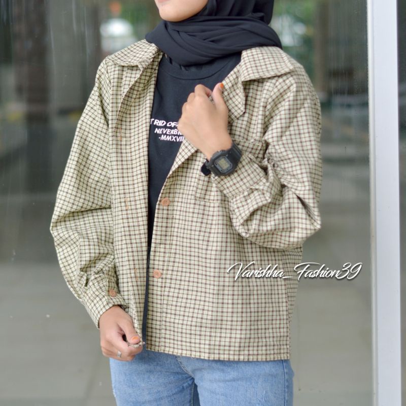 KEMEJA TARTAN CROP OVER SIZE//KEMEJA KOTAK KOTAK WANITA//RUMI OUTER