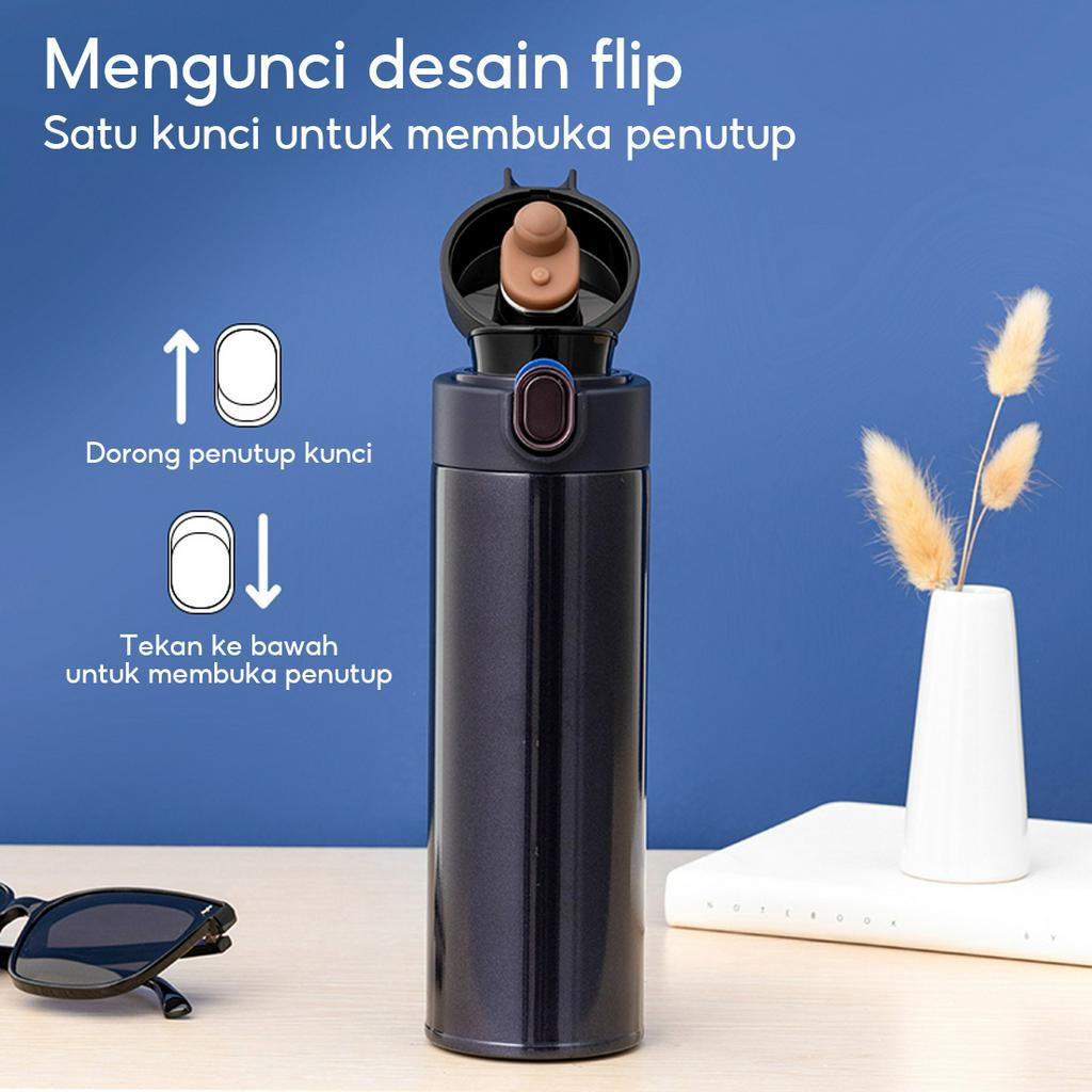 MINISO Botol Air Minum Termos Air Panas 480ml Baja Cangkir Tahan Panas & Dingin Tumbler Isolasi Vakum Termal Stainless Steel Pria Wanita Portabel Motif