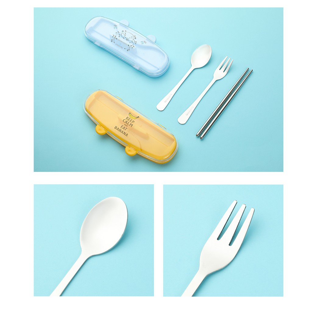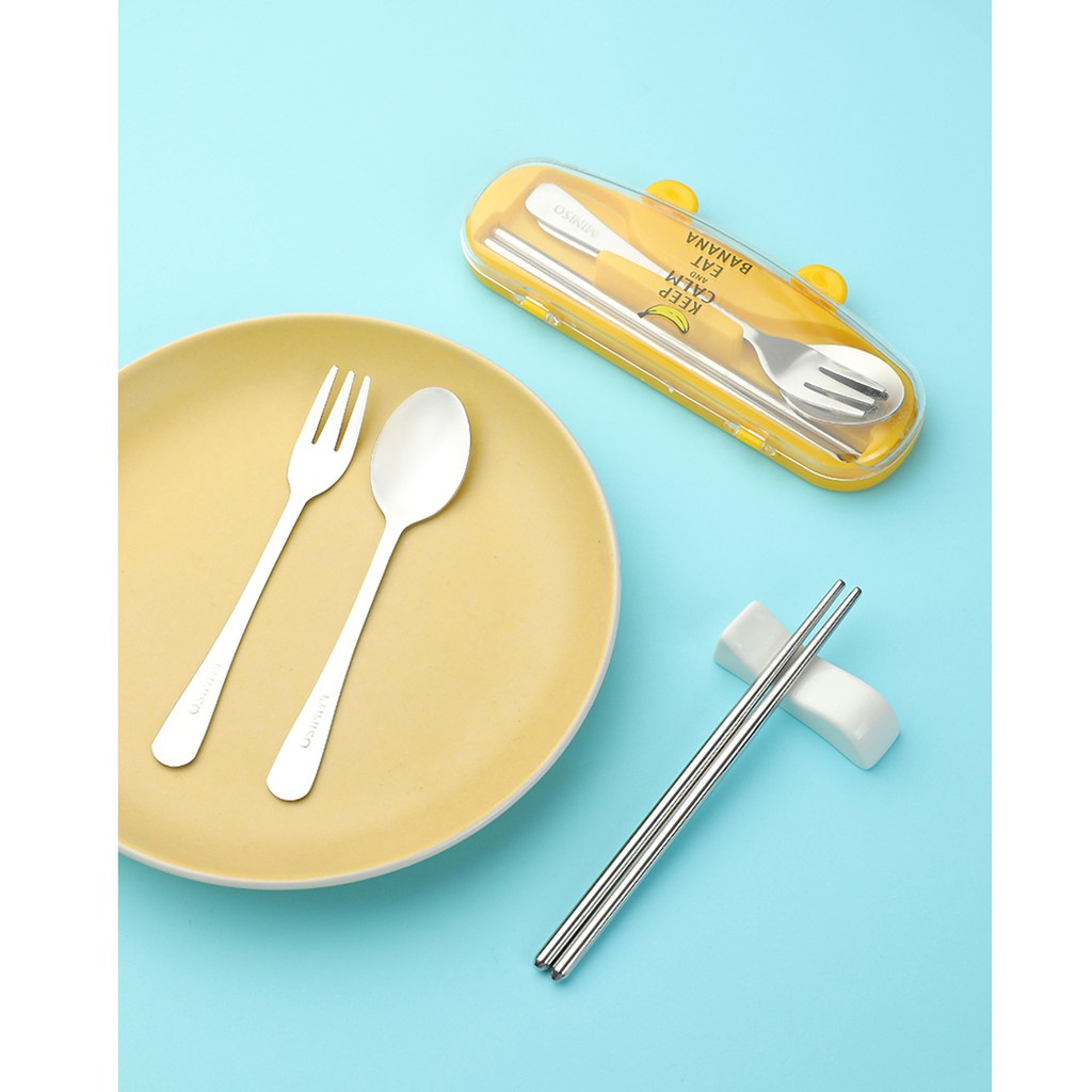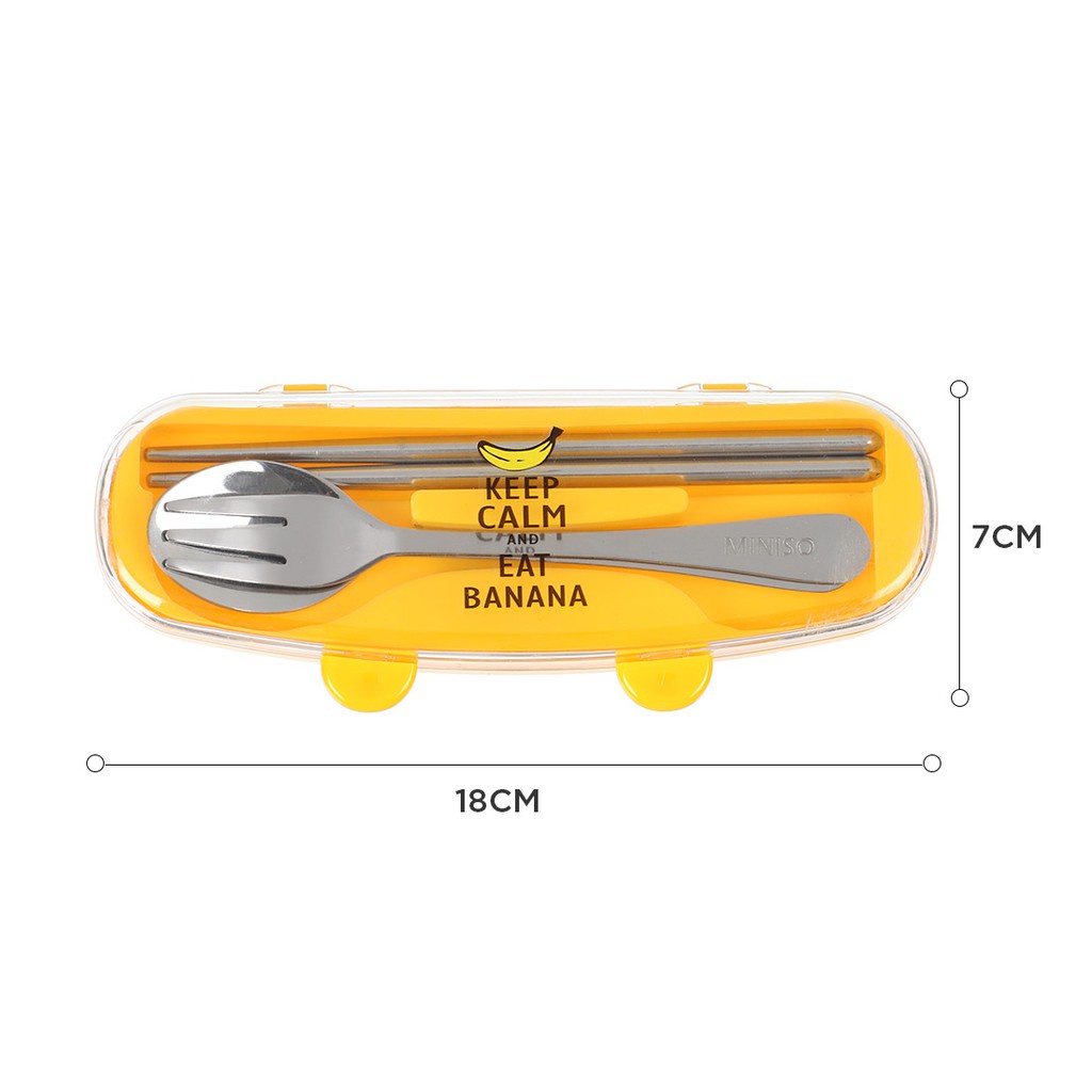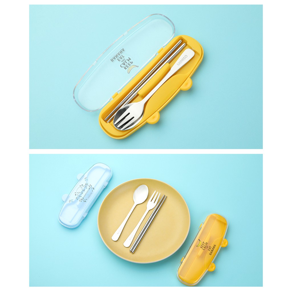 Miniso Official Sendok Garpu Sumpit Set Lucu 3pcs Alat Makan Stainless Steel Tableware