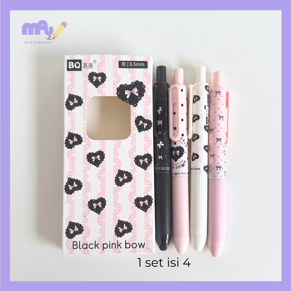 [MOUMOU] Pen Coquette Clover Polka Aesthetic (Isi 4pcs Varian Pilihan) / Pulpen Lucu & Kawaii/ Stationery Aesthetic