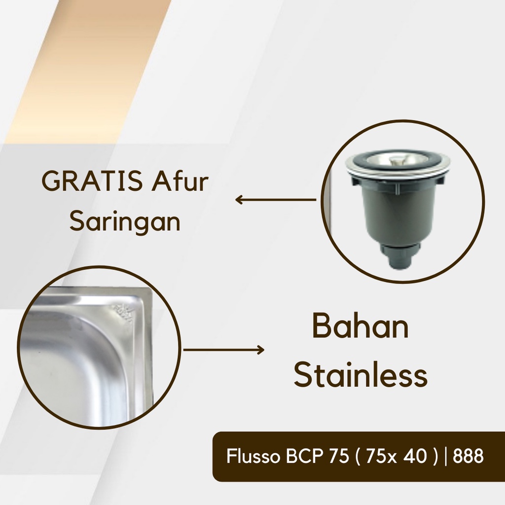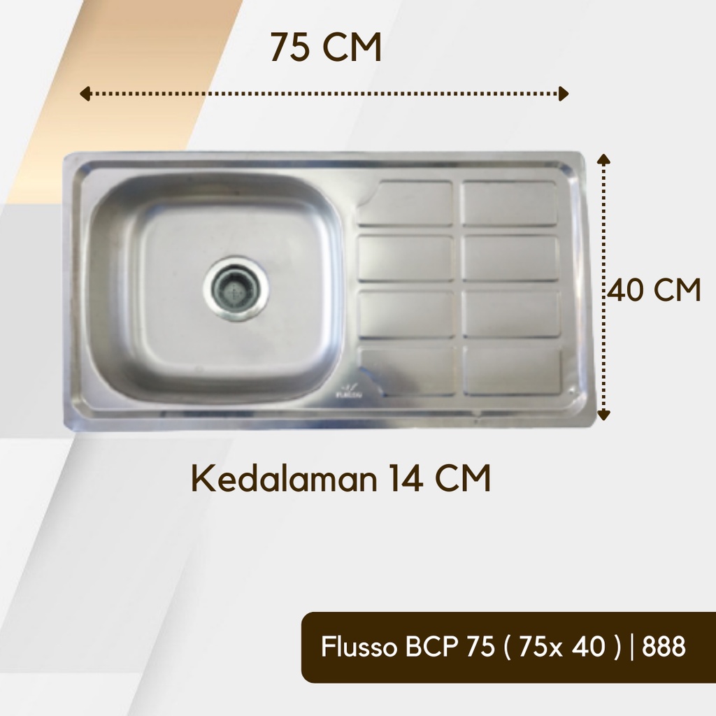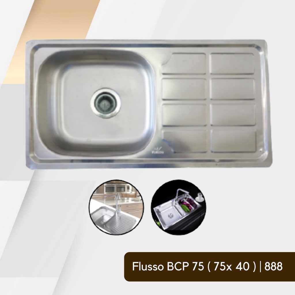FLUSSO Bak Cuci Piring Stainless 1 Lubang | Sink Cuci Piring | FLUSSO BCP + AFUR 75*40 14 CM | 888