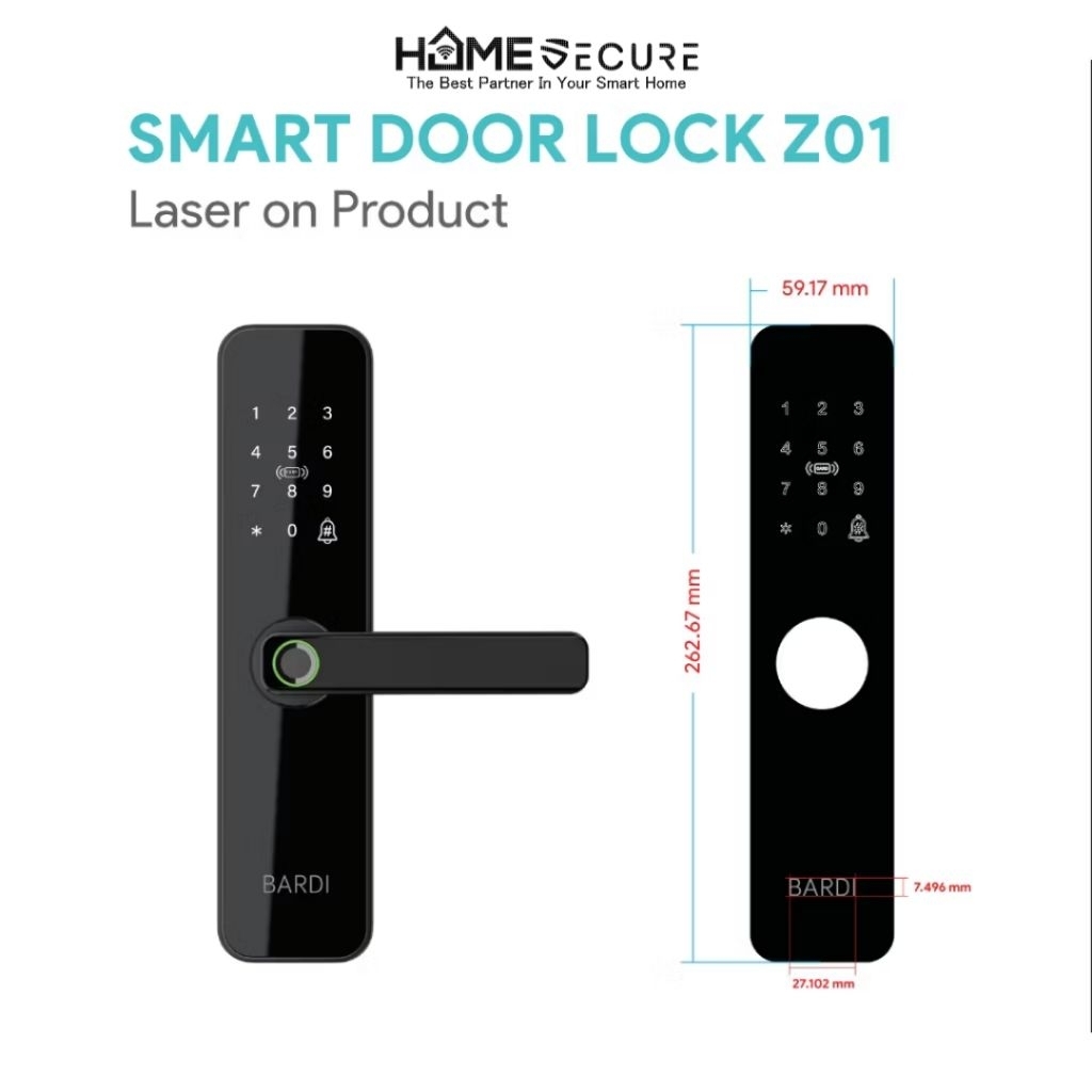 BARDI Smart Door Lock Fingerprint With Handle Z01 / Kunci Pintu Digital BARDI Original Garansi Resmi