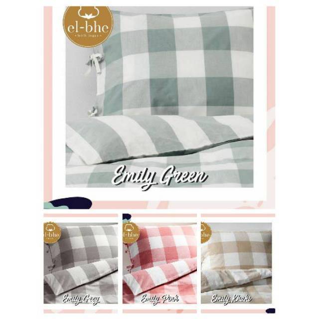 Sprei Katun Lokal Premium CVC ELBHE Motif Emily Biru, Abu, Coklat/Khaki, Hitam & Hijau