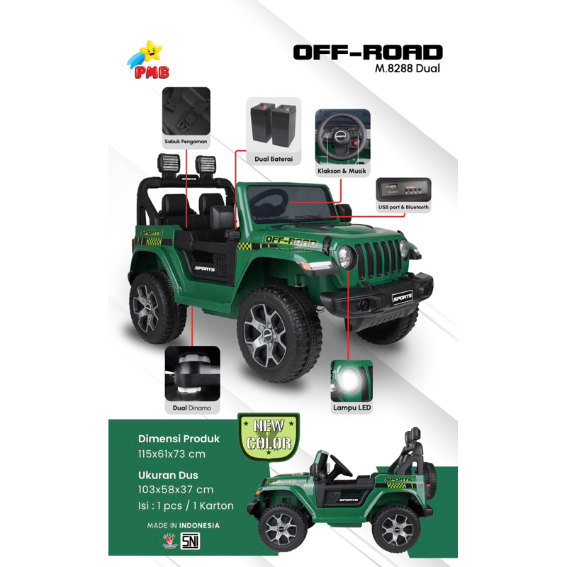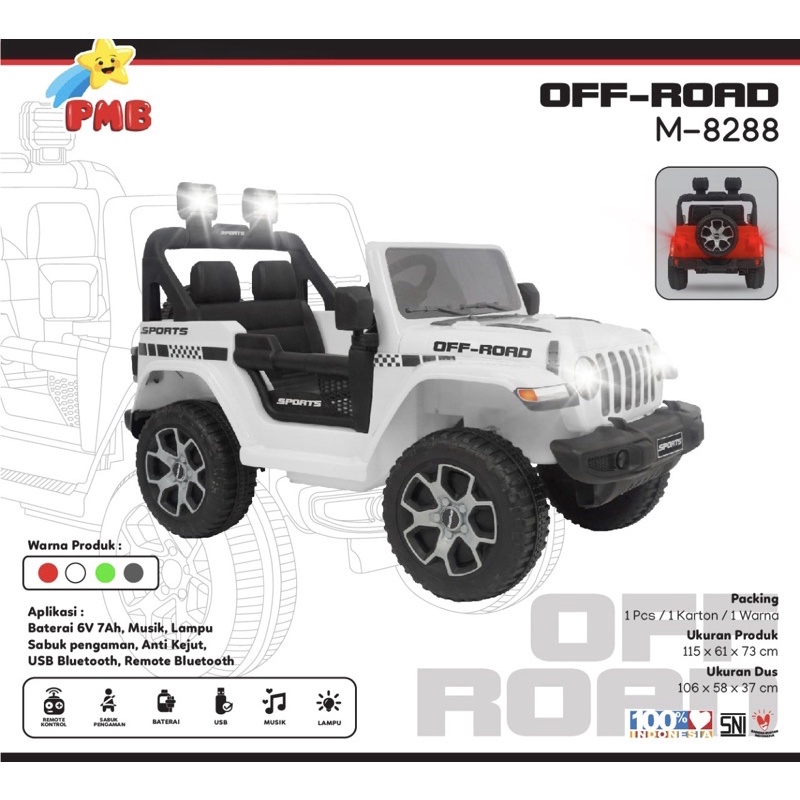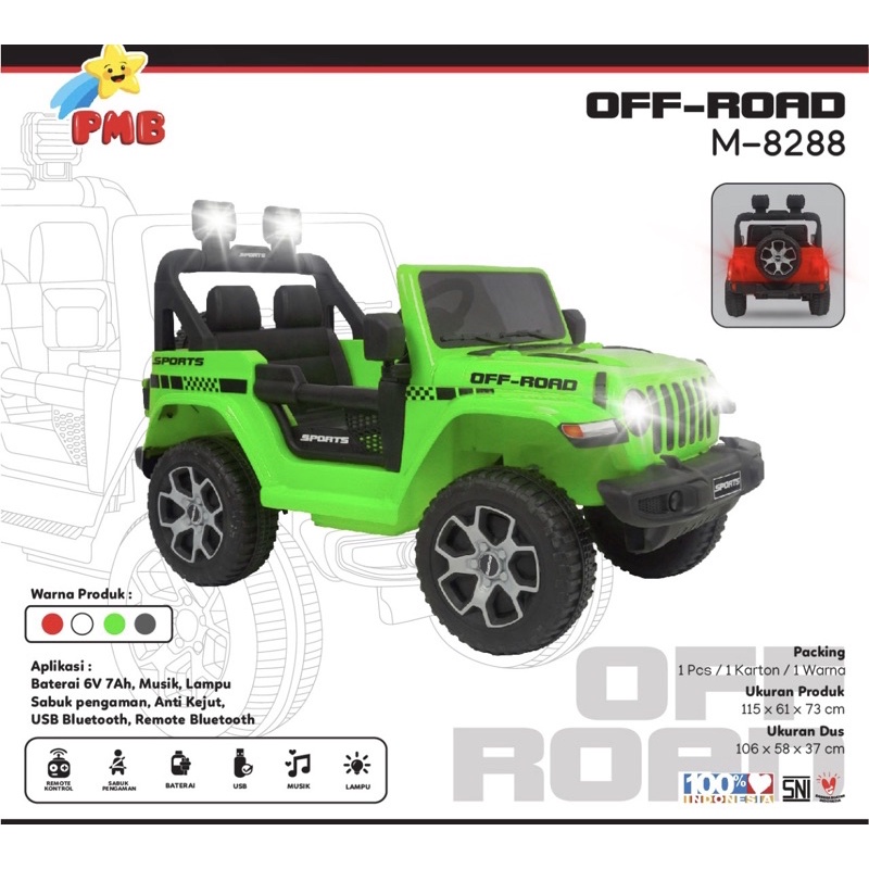 Mobil Aki Anak PMB JEEP Rubicon Off Road 8288 M8288 Mainan Anak Remot Murah