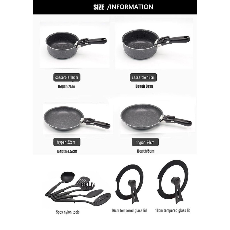 IDEALIFE - Granite Cookware Set - Panci Masak Marble Set - IL-22a